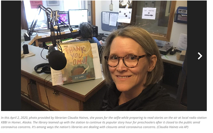 I wanted to send along this post from the Association of Rural and Small Libraries membership listserv since it provided an example helping children continue to connect to library services by partnering with a local AM radio station. Shannon Storybooks, radio connect kids isolated in far-flung Alaska<https://gcc01.safelinks.protection.outlook.com/?url=https%3A%2F%2Fwww.wsls.com%2Fentertainment%2F2020%2F04%2F28%2Fstorybooks-radio-connect-kids-isolated-in-far-flung-alaska%2F&data=02%7C01%7Cwhites29%40michigan.gov%7Ca6ec0fd7078f49f81b3108d7ed1b282a%7Cd5fb7087377742ad966a892ef47225d1%7C0%7C0%7C637238573205821227&sdata=7PQOsfZxflq3qC1aaMXzHuA2E8WIdye%2BeMDS03Vs5x0%3D&reserved=0> [Screen Shot 2020-04-30 at 11.26.50 AM.png] ANCHORAGE, Alaska - All it takes is a few words from a storybook to connect kids over the crackle of an AM radio station. It's not 1950s entertainment, but a nostalgic way children in even the most remote Alaska communities - many with unreliable internet - can overcome further isolation brought on by the coronavirus. The public library in the small town of Homer got creative when it had to close during the pandemic, partnering with a radio station to bring a popular story hour to preschoolers stuck at home. Youth services librarian Claudia Haines reads some children's books - chosen to appeal to older kids or adults listening in, too - Thursday mornings on KBBI, which serves the town of 5,000 and surrounding villages. The AM station is among several radio broadcasters that have served far-flung Alaska communities for decades, chronicling their histories and cultures and even sending personal messages on the air for people far from the limited road system in the vast state. "Radio has such a storytelling tradition," Haines said. "It's nice to see it put to use." The program is among ways libraries nationwide are adapting during the pandemic, according to a recent survey by the Public Library Association. Of the more than 2,500 libraries that responded, over 90% said their buildings have closed. Like the Homer library, they have expanded online services like streaming media and e-books. They're also contributing to their communities. The El Dorado County Library in California is getting help using its 3-D printers to make face shields for hospitals and other facilities. The St. Louis County Library in Missouri partnered with a diaper bank to provide a drive-through emergency diaper service at four branches. In Alaska, the radio story hour, which is also live-streamed on KBBI's website, has dance breaks to let young listeners burn off some energy. The program ends with time for kids to call in. "They were really happy to call and say hello and have me recognize them," Haines said. "The spirit of the first program was, 'Hey, we've been apart while the library is closed and we're all staying home, but we're still here together in our community, and this is a way to stay connected.'" Four-year-old Polly Fraley, a regular at the library's story time, said her favorite part of a recent show was "when everybody ate dinner" in the book "Thank you, Omu!" by Oge Mora. Her mother, Cassy Quinlan, said her family has listened to the radio station for a long time, even communicating with friends who have spotty internet through KBBI's "bush lines" service, which allows locals to have messages read over the air. They can include anything from birthday greetings to love poems, Quinlan said. Polly and her 6-year-old sister, Lucy, have been missing the library since it closed in mid-March. But the pandemic "is bringing people back to simplicity, you know, the basics - radio, reading, doing a puzzle," Quinlan said. Haines, the librarian, said she jumped at the chance to connect again with families. Hosting the show is one of the few times she leaves the house, working with a single radio staffer to get it on the air. The story hour is part of the station's larger effort to keep people connected despite their isolation, KBBI development director Loren Barrett said. It's also added weekly COVID-19 briefings with officials and a show called "Social Distance" that features live music and food talk for listeners craving new recipes. "Radio, particularly in a small community like that ... can really focus in on children and do excellent work," retired broadcaster Al Bramstedt Jr. said.