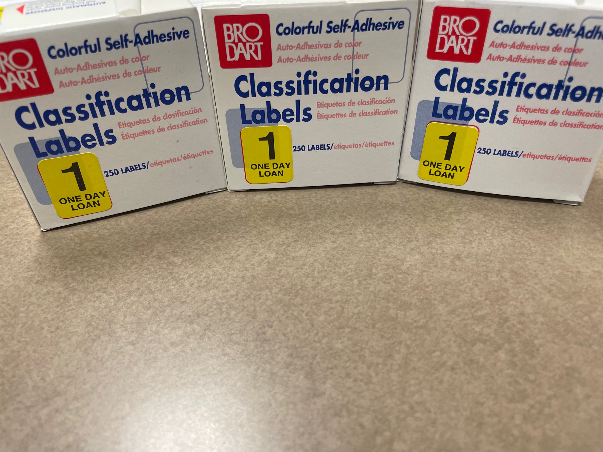 Hello, West Bloomfield has 9 boxes of One Day Loan labels from Brodart that we no longer need. First one to reply with your RIDES code can have these beauties! [image: IMG_4771.jpg] -- Lauren Douglass Support Services Supervisor West Bloomfield Township Public Library douglass@wblib.org https://wblib.org/