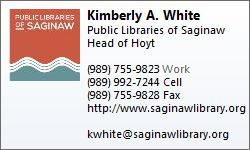 The following workshops will be presented free of charge by Theresa Runyan, MeL Engagement Specialist on Thursday, November 14th at the Hoyt Library located at 505 Janes Ave in Saginaw. There are a few open seats left. If you'd like to attend, please register by emailing me at kwhite@saginawlibrary.org<mailto:kwhite@saginawlibrary.org> with the session you would like to attend and write Mel Training in the subject line. Thanks! Kim White Head of Hoyt Library Learn how to Navigate the MeL Website and MeL eResources Quickly & Easily - You'll also discover ideas that will help you connect eResources to what you do every day; during your daily activities and tasks, and interactions with co-workers, patrons, and your community. 9:00 AM - 12:00PM - This session is designed for the Expert or Power User. So, if you already use or have used databases in the past and you'd like to know more, this session is for you. 1:00 - 4:00 PM - This session is designed for the Novice Learner. So, if you have never used databases, use them infrequently, or simply need to brush-up on your databases skills, this session is for you. [cid:image001.jpg@01D5962F.373CF9F0]