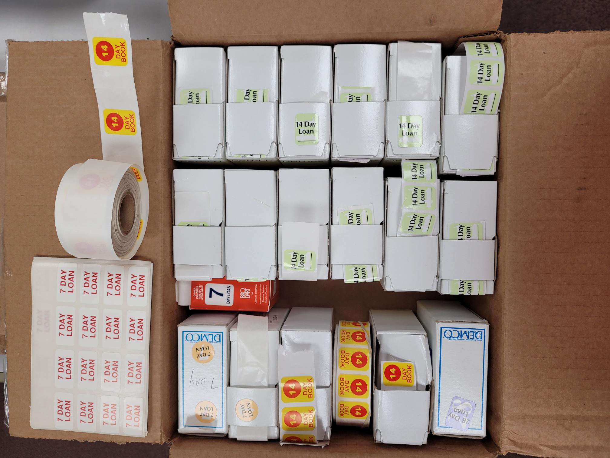 Hello, We have the following partial boxes of labels to give away. If you can use them, let us know which ones (or all) and we'll send them to you via Rides. 7-day loan, light orange - 2 boxes 7-day loan, white background, black text- 1 box 7-day loan, white background, red text - ON SHEETS - several sheets 14-day loan, light green - 12 boxes 14-day book, yellow & red - 3 boxes 14-day book, yellow & red - LABELS WITH LABEL PROTECTOR - 1 box 28-day loan, light purple - 1 box Thank you, Jennifer Perryman Youth Services Coordinator Milan Public Library 151 Wabash Street • Milan, MI 48160 (734) 439-1240 • www.milanlibrary.org<http://www.milanlibrary.org/> Facebook<https://www.facebook.com/pages/Milan-Public-Library-Milan-Michigan/148074831645> • Instagram<https://www.instagram.com/milanpubliclibrary/> CLOSED: Saturday, September 2 and Monday, September 4 in observance of Labor Day Our hours: Monday/Wednesday/Friday 10:00 - 6:00 Tuesday/Thursday 1:00 - 8:00 Saturday 10:00 - 4:00