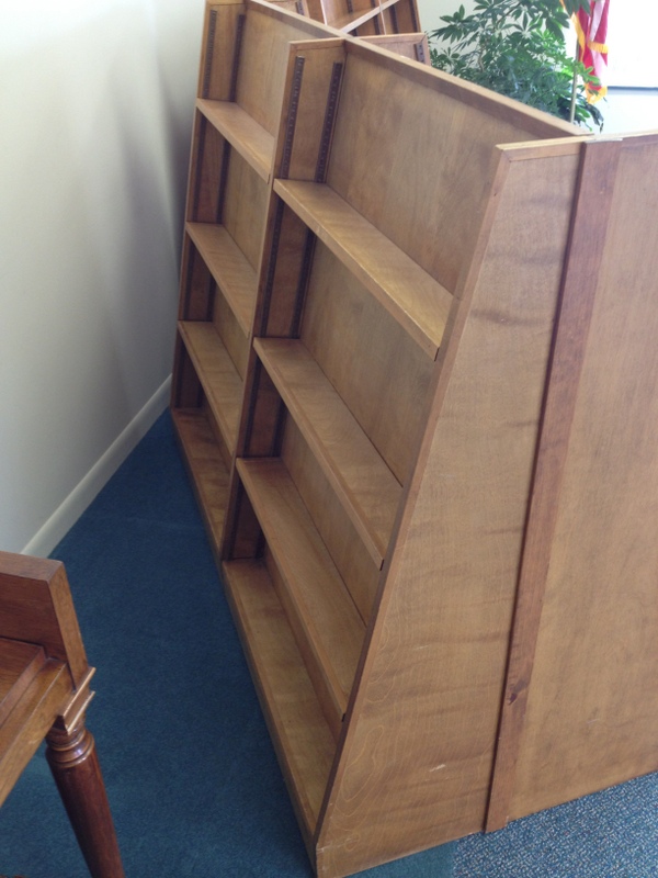 Hi everyone, Sorry for cross posting... After a mini renovation project we find we are no longer in need of two 2-sided book cases and two sets of locking showcase doors. Pictures are attached and the dimensions are as follows: two 2 sided Book Cases 10” deep on top, 28” deep on bottom 48” tall 60” wide 4 shelves per side ¾” birch plywood 2 sets locking Showcase Doors ¾” deep 47¾” tall 24” wide European hinges If interested please contact me off list. Thanks! Kate Van Auken Rawson Memorial Library 6495 Pine Street Cass City, MI 48726 989-872-2856 989-872-4073 fax www.rawson.lib.mi.us kvanauken@rawson.lib.mi.us