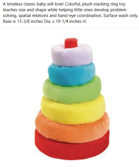 The Canton Public Library has two items from sensory/early literacy programming that we are giving away to any interested library. *Giant Plush Stacking Ring Set* [image: StackingRings.png] *Hands-on Language Center*