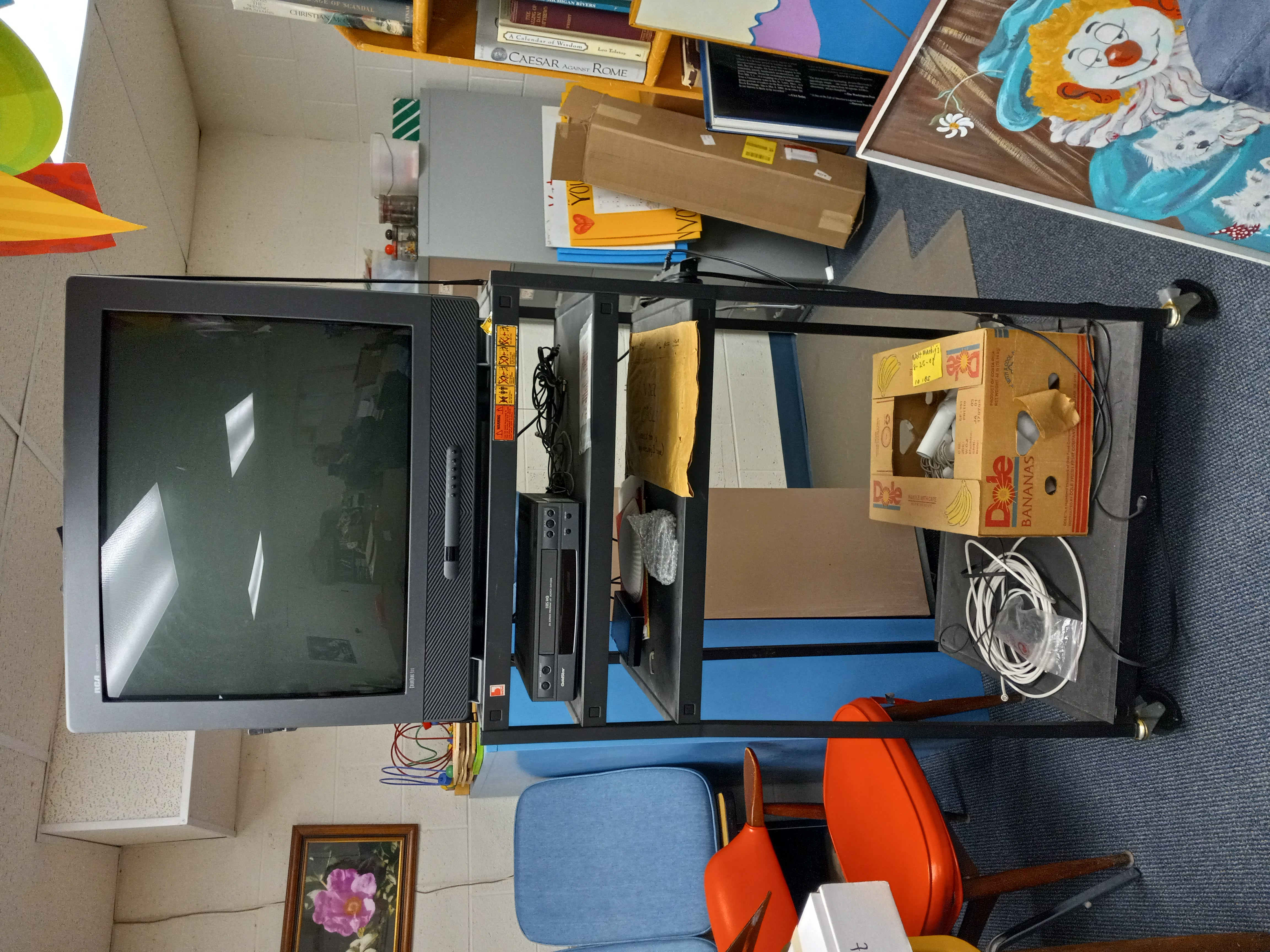 The West Branch District Library is doing some house cleaning and we have a TV and cart from our old literacy program. It is free to a good home, you will need to pick it up. There is also a VHS player with it but you can connect a DVD player. Attached is a photo of the set and cart. John Sheridan West Branch District Library West Branch, MI
