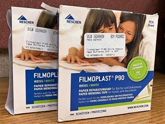 More Back-to-School cleaning, from our the Mending department! Two boxes of Filmoplast P-90 paper hinge tape available. Both practically new. $15 each, or $25 for both. Compare at Demco https://www.demco.com/filmoplast-reg-p-90-paper-hinge-tape Shipping via RIDES [cid:image003.jpg@01D57E94.582B9B10] Anne E Oyerly Building & Special Collections Manager James White Library Andrews University 269-471-6117