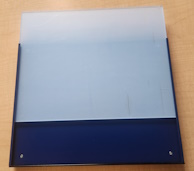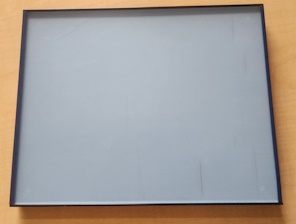 They have a navy blue metal frame with a removable glass pane, and have two strong adhesive strips on the back. [image: 20250418_142032.jpg] [image: 20250418_142105.jpg] Though they have never been used, they were purchased more than 20 years ago, so they are "like new." We still use these holders in some areas of the library, and I guess it speaks to their quality that we have so many backups we haven't needed.