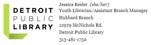 Hi friends, I had a handful of people request the responses from this question so here it is. Lots of great ideas! I ended up ordering pencils, stickers, erasers, a small field journal, lanyards with a library card holder attached, and bookmarks to color. I'll also include an informational flier and a welcome letter. I'm making these available to children ages 5-17. Plymouth District Library * welcome letter from the director * tri-fold brochure about library services with insert cards about digital collections, databases and perks * floor plan map * invite to request a tour * magnet with library hours * brochure/donation form for our Friends organization We also invite kids to do a scavenger hunt and if they turn it in, they get a little plastic wallet for their library card (except that I think the front desk never actually gives these out) Shelby Township Library * stickers Lapeer District Library * A bookmark to color * A sticker that says "I got my library card today" or "I love my library". * A welcome letter to parents that explain library privileges and a QR code link to our website for storytimes and children's events. Hackley Library Our goodie bag this year (ours is our SRP registration goodie bag) is a heavy plastic bag that says "I love my Library!" In the bag is a small diamond art kit, a pop it fidget, a tattoo, a small notebook, and small container of play doh. Harland’s Cromaine Library I love this idea! I think we sneak in a little database sheet, and we give every kid that signs up for a new card a little lanyard for the keychain part. I love the idea of stickers, too! Flat River Community Library * Welcome letter * Services brochure * Youth Services Brochures * Program calendar * Digital services/Social Media flier * Shoutbomb Text Messages flier * Michigan E-Library DIgital Resources * Programming Interest Survey * Invitation to our Craft-In program * Bookmark * “I got a library card” sticker * 1 piece of FRCL Swag Howell Carnegie District Library We don't hand out bags but a popular item that we hand out at other events are mood pencils. We order them with the library name on them from Janway. They're always a hit. [cid:a47e0c69-ded2-47b4-ab44-ff05eb174aef] ________________________________ From: Michlib-l <michlib-l-bounces@mcls.org> on behalf of Jessica Keeler via Michlib-l <michlib-l@mcls.org> Sent: Wednesday, June 5, 2024 2:45 PM To: michlib-l@mcls.org <michlib-l@mcls.org> Subject: [Michlib-l] Library Welcome Bags CAUTION: This email originated from outside of Detroit Public Library. Do not click links or open attachments unless you recognize the sender and know the content is safe. Hi friends, I'd like to compile some welcome bags for kids that sign up for cards. If you give these out, tell me what you have in them. Thanks! [cid:baca4948-c316-40f3-9adb-2f5992b700a6]