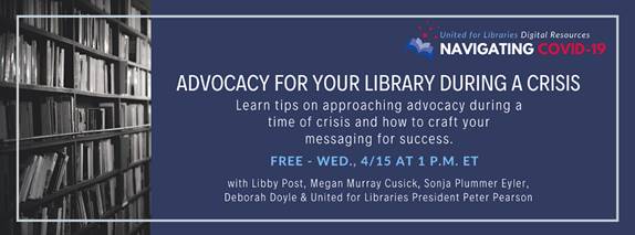 FW: Free United for Libraries webinar on April 15: "Advocacy for Your Library During a Crisis"