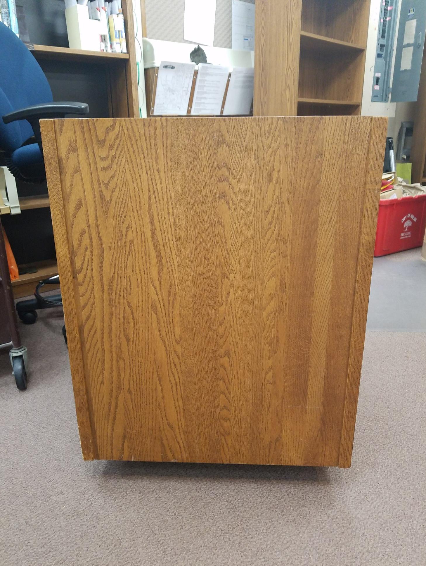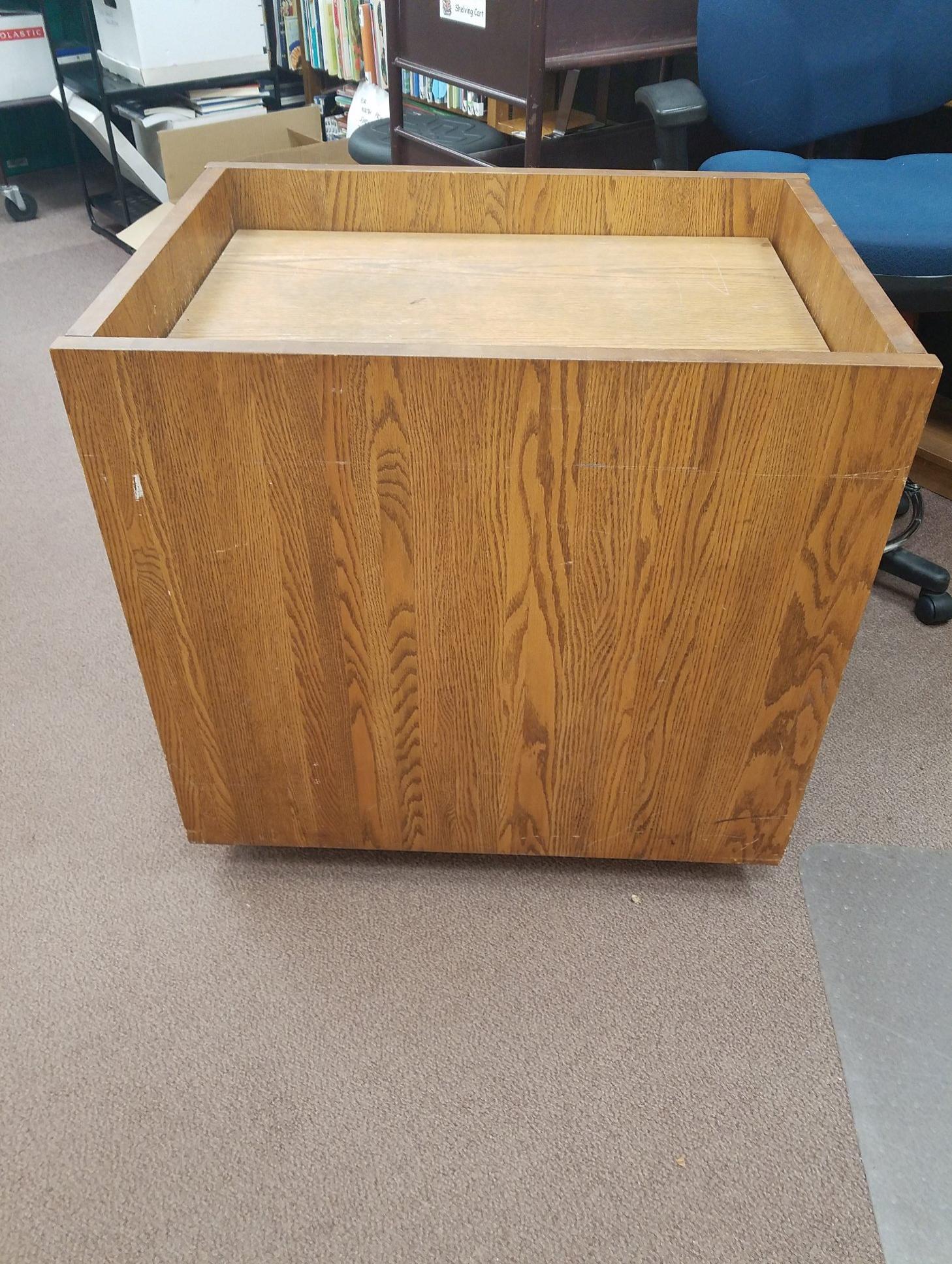 We have a solid oak bin receptacle for incoming drop box items for which we no longer have a use. The measurements are: 22" deep x 30" wide x 30" tall. Pictures are attached. Free to good home, but you must pick it up! Barbara Beaton Assistant Director/Reference Librarian Milan Public Library Milan, MI 48160 734-439-1240 www.milanlibrary.org<http://www.milanlibrary.org>
