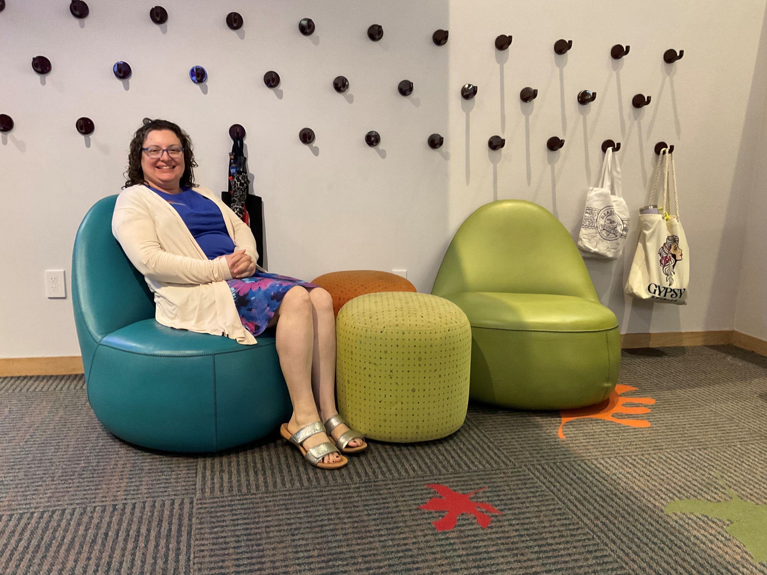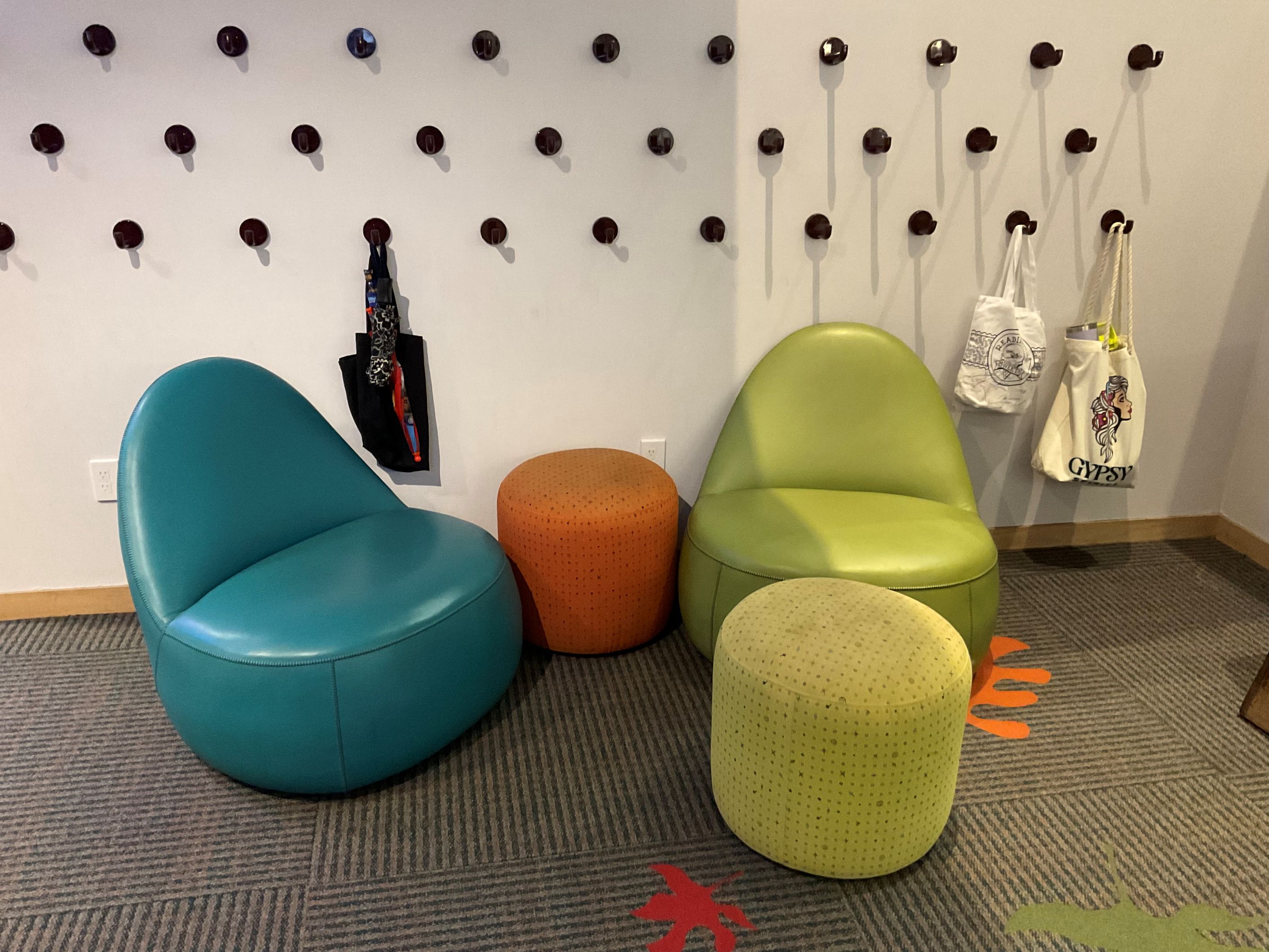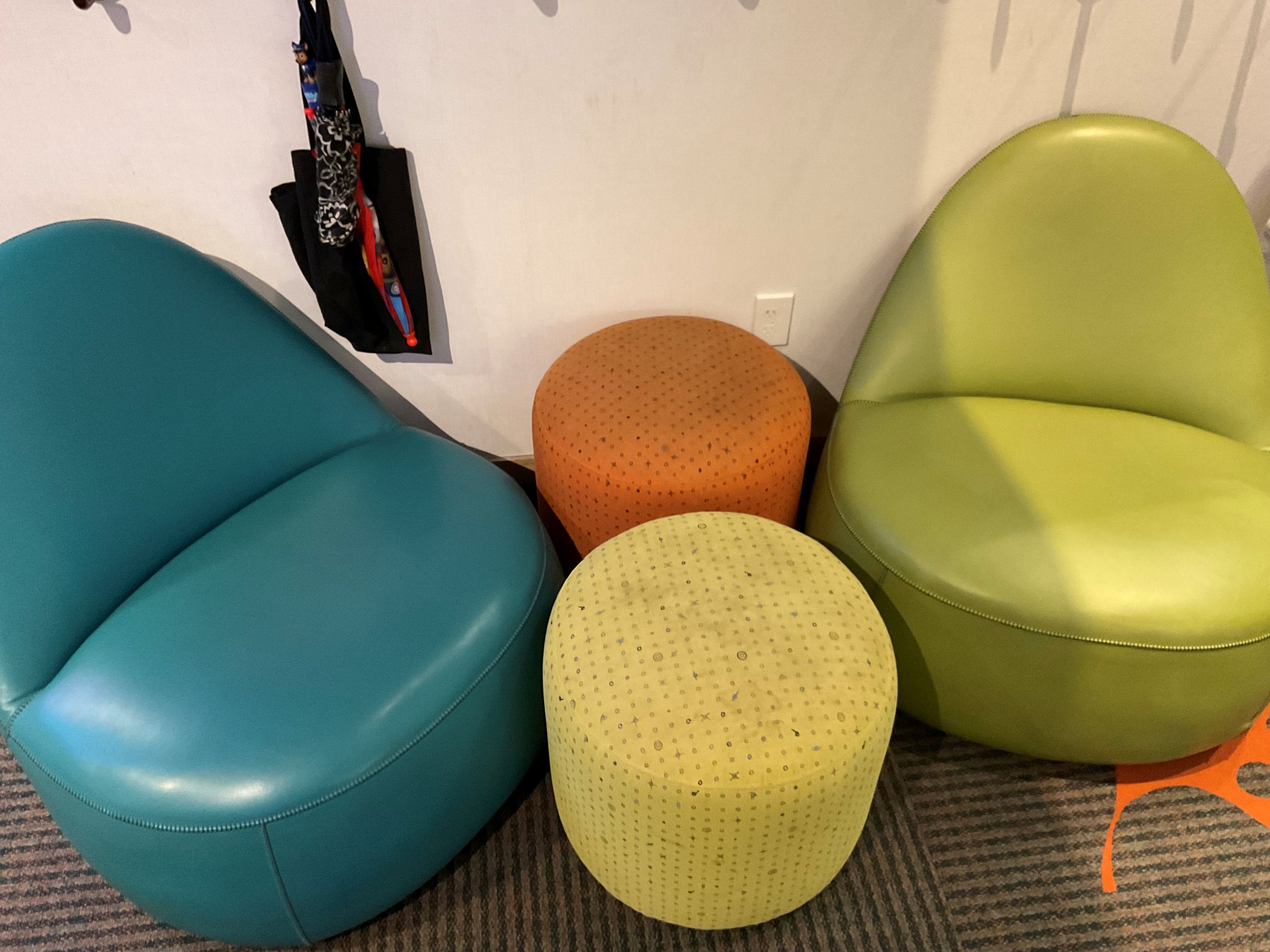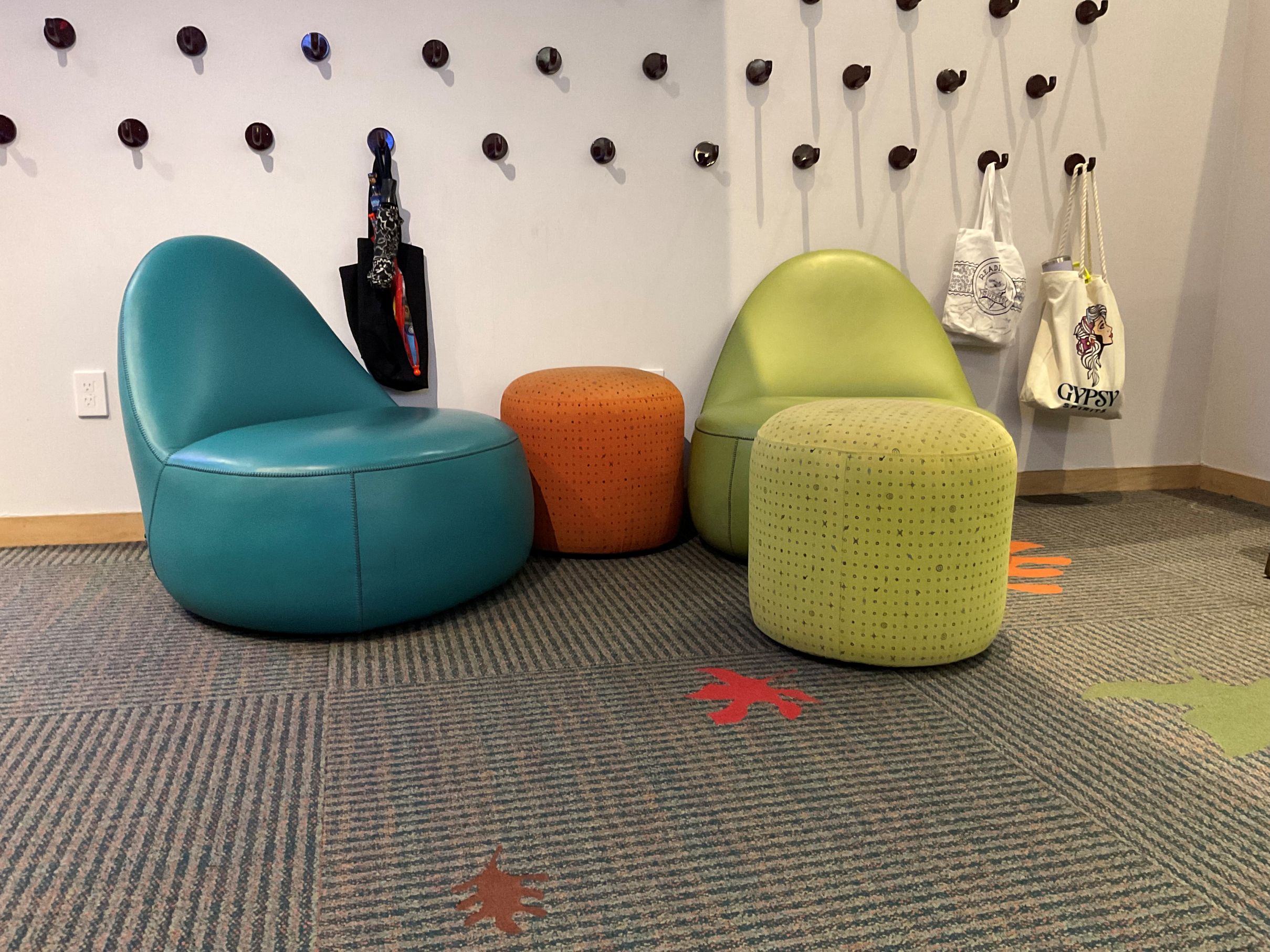 Some well used furniture from our Teen Room - all 4 pieces roll - good casters. Head of Youth Services, Janice Heilman not included!