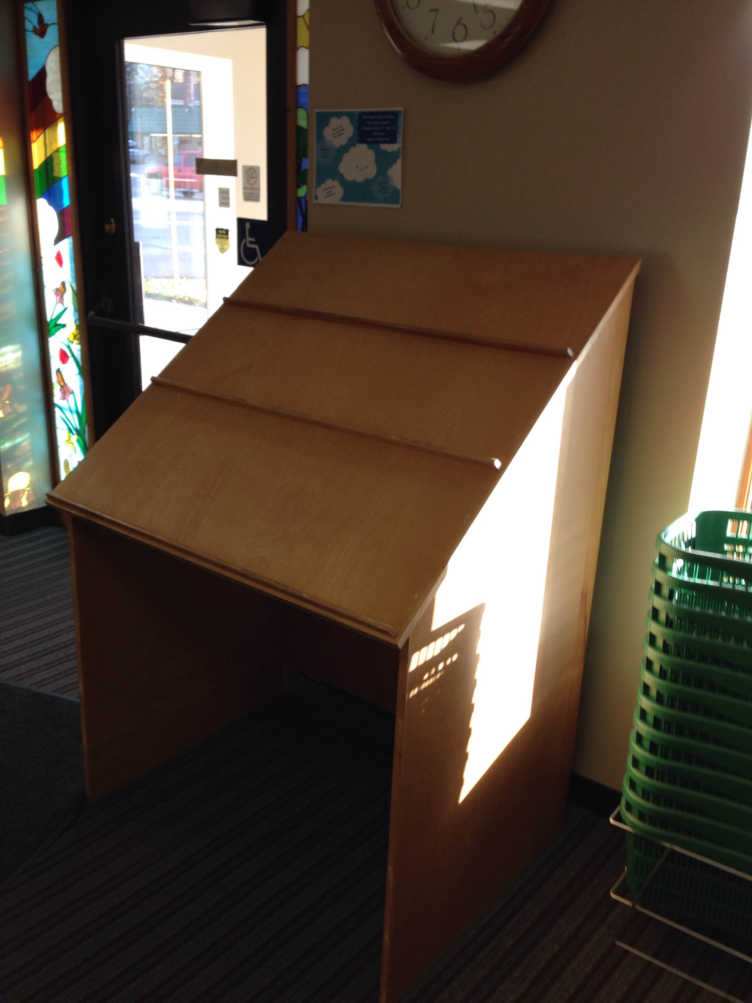 This interior book drop cover is free to a good home. The dimensions are 37 1/2"wide by 29 1/4" deep by 52" high. Please let me know if you are interested or want more pictures. You would be responsible for transport. Erin Erin Schmändt, MLIS Library Director River Rapids District Library 227 E. Broad Street Chesaning, MI 48616 (989) 845-3211 e.schmandt@vlc.lib.mi.us
