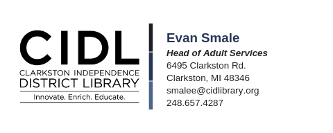 Job Posting: Part-Time Adult Services Librarian (Clarkston Independence District Library)