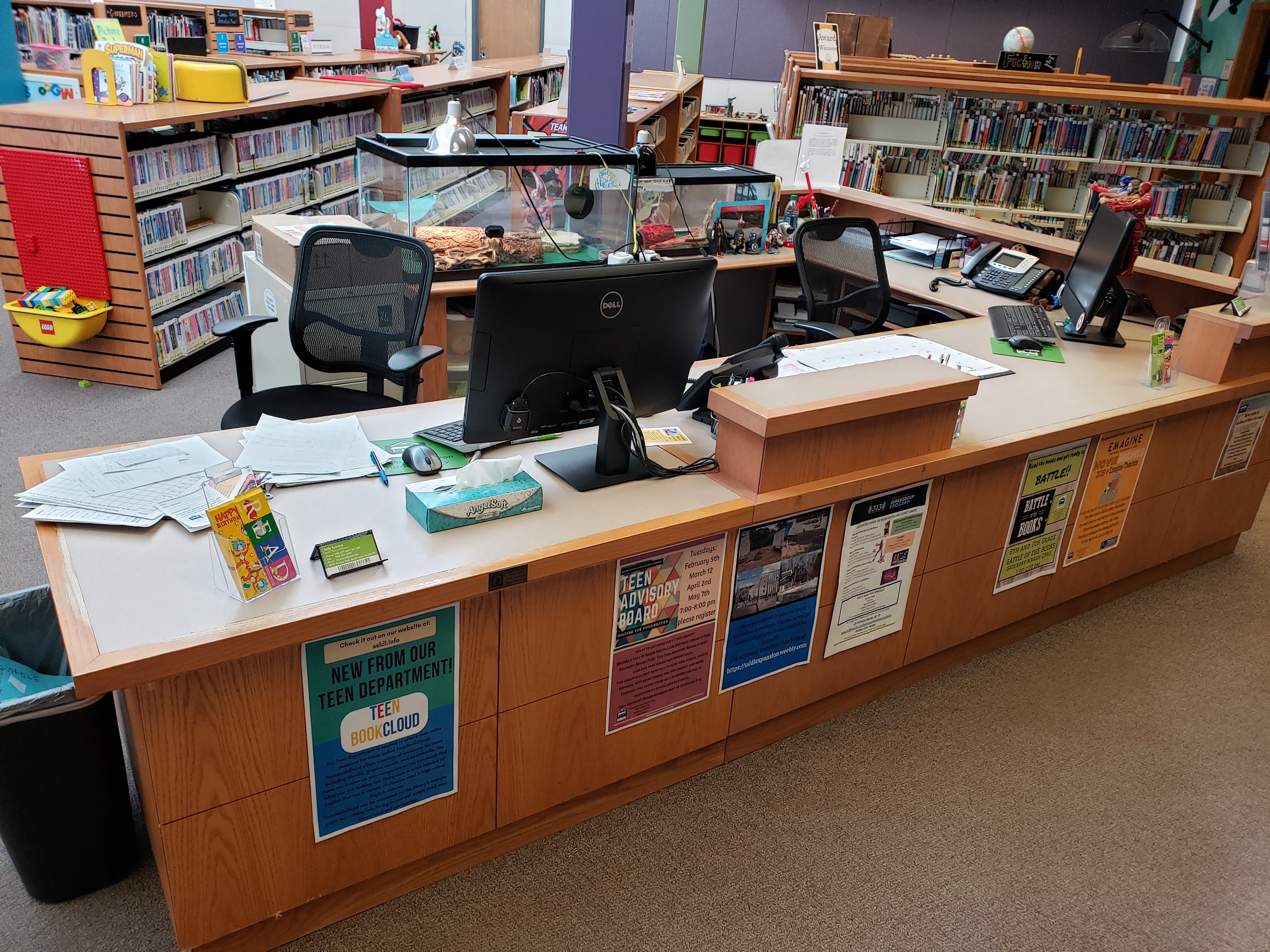 Look no further! We are renovating our youth area and our public services oak desk needs a new home. Accessories not included : )