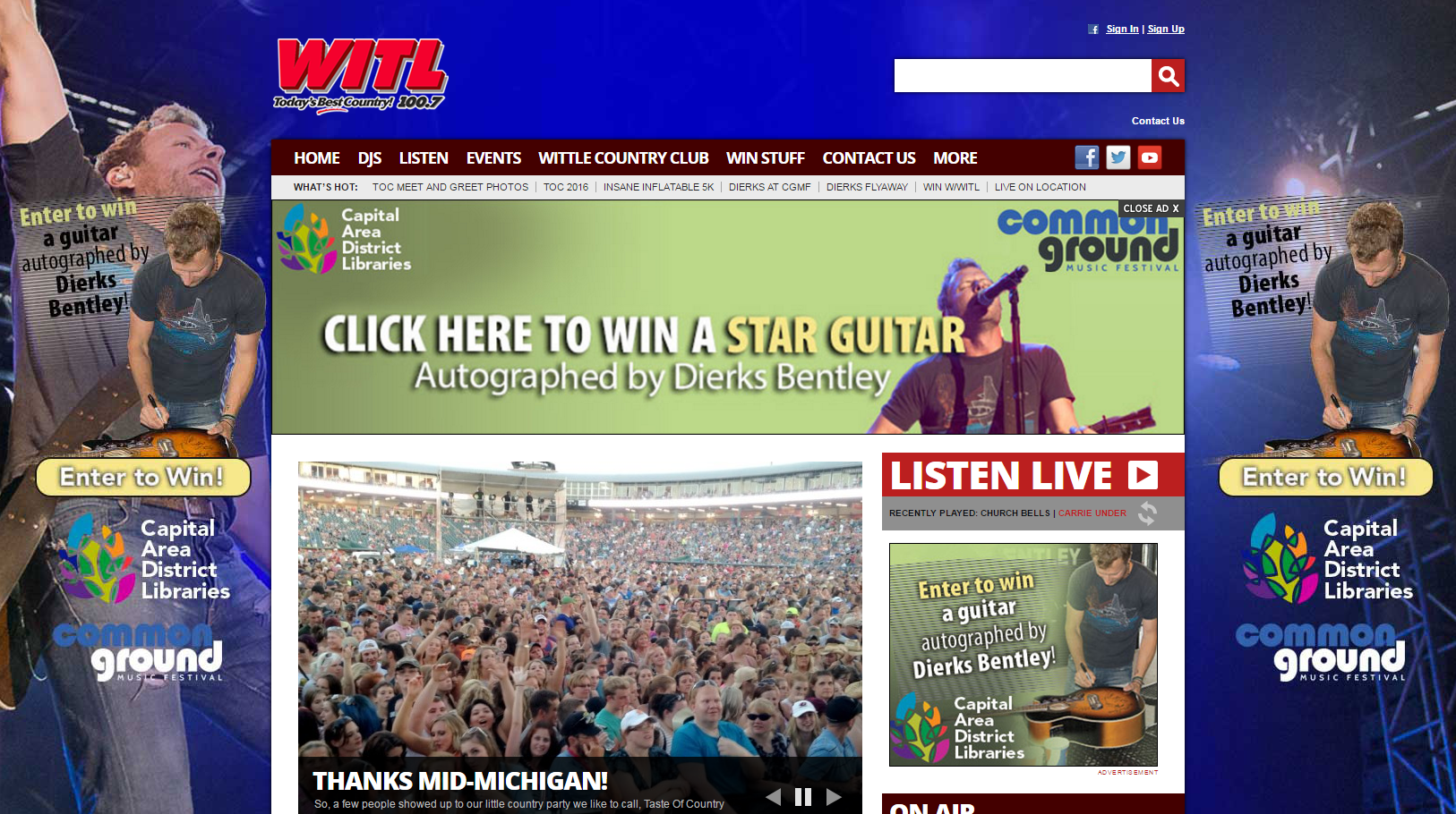 Hi MichLib, Here at CADL we've been using music promotions to get the word out about our library system. Currently, we're running a promotion where patrons can win a guitar signed by country star Dierks Bentley - we're calling it our "Star Guitar" promotion. To get the word out about the contest, we hosted a "site takeover" on local radio station's sites. Attached is an example. We've also looked at local concerts and festivals as opportunities for promotion. Using hoopla (the digital service I'm sure many of your library systems also have), we asked patrons to check out digital albums from the service to be entered to win tickets to Common Ground Music Festival. The more items the patron checked out, the better their odds of winning tickets. The contest also improved our hoopla usage. We have had 7,379 hoopla checkouts this year, as opposed to 3,018 for the same period last year. Last, our "Everything Right Here" ad campaign takes inspiration from local Lansing musician Taylor Taylor's music. She acts as a face of our campaign in certain outlets, appearing in commercials for the library, like this one: https://www.youtube.com/watch?v=3Y51KCFcqcg&feature=youtu.be Is anyone else using music to promote their library? We want to hear your ideas! Eli Eli R. Klein Online Content/Social Media & PR Coordinator Capital Area District Libraries - Administration 401 S. Capitol Ave., Lansing, MI 48933 517-367-6355 | kleine@cadl.org<mailto:kleine@cadl.org> www.cadl.org<http://www.cadl.org/> | facebook.com/cadlibrary | twitter.com/cadl
