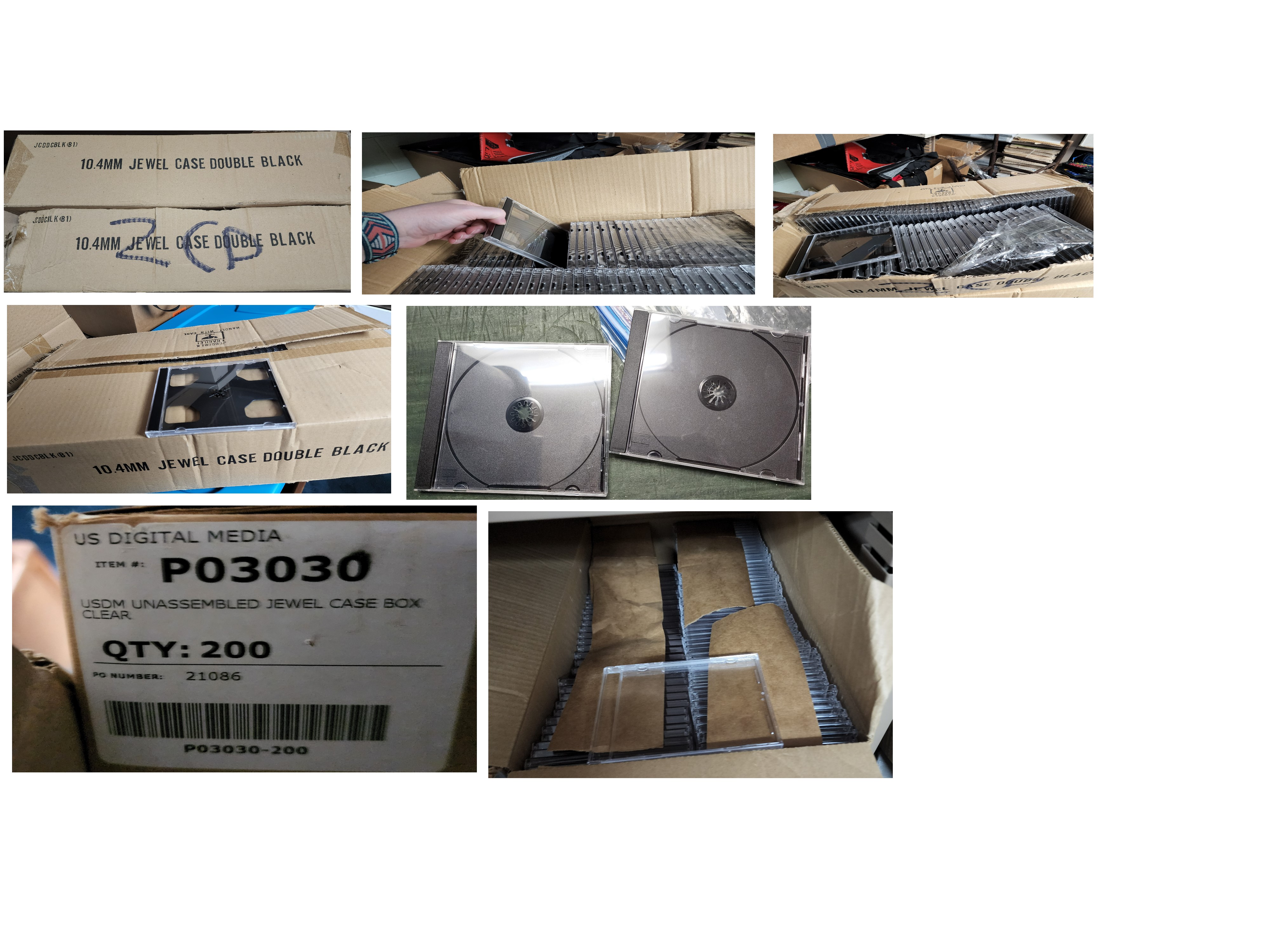 One of the 10.4 MM Jewel case double black boxes has 2 single jewel cases in it. These are free first come, first served. One box of unassembled jewel case box clear, and two boxes of 10.4 mm jewel case double black. Thank you, Amber Giller Office Assistant Vicksburg District Library 269-649-1648