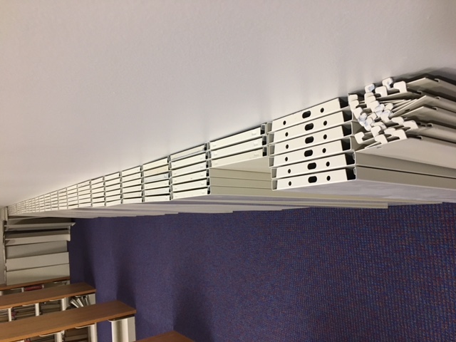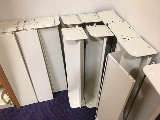 Hi all, We've been doing some collection moving and weeding recently and have a variety of metal shelving that we're offering up to other libraries. Everything we have is beige and a variety of sizes and styles (flat shelving, angled shelving, flip top for newspapers/magazines). Rather than inventory everything we're parting with, I've attached a couple pictures so you can get a sense of what it looks like. If you have any interest, get in touch with your needs/interest and I can get details to you. There are no brand markings on any of the shelving. Thanks, Matt Matt Church, Library Director Berkley Public Library 3155 Coolidge Hwy. Berkley, MI 48072 248-658-3449 mchurch@berkley.lib.mi.us www.berkley.lib.mi.us