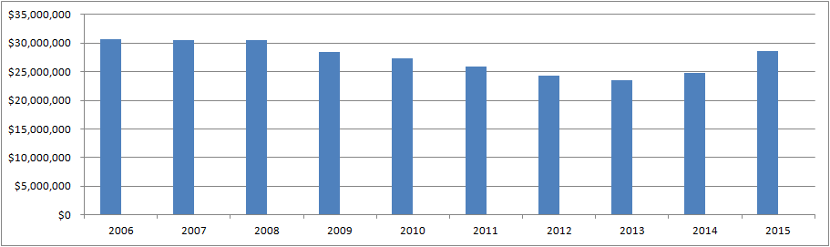 Michlib folks, Thank you to all who wrote in response to this question. From the responses, it does not appear that sheriff elections are the biggest factor. Some libraries' penal fine receipts even went up despite elections. In our case, I learned that the County Treasurer paid us 13-months' penal fines last year and thus paid only 11-months' penal fines this year. That reduces our drop to "only" 13% if we compare 12-month periods. I also learned that the new circuit court judge who was elected in Nov 2014 changed some practices. Helen On 8/12/2016 2:37 PM, Helen Dewey wrote: