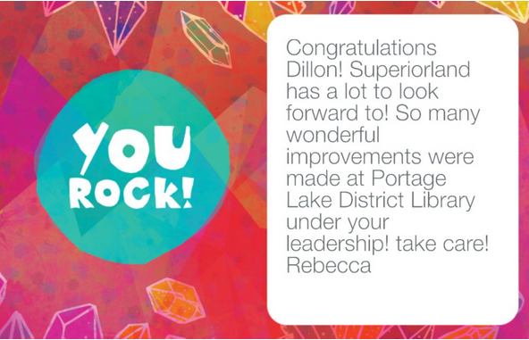 It is my honor to announce that Dillon Geshel has been chosen as the new Director of the Superiorland Library Cooperative. Dillon is currently Director of the Portage Lake District Library in Houghton, MI, where he lives with his wife and three children. Dillon was recently named to the Michigan Library Association Board of Trustees, and serves on the Friends of Michigan Libraries Board as well. Dillon has served on many committees and boards both within the SLC and throughout the state, and we feel that his creativity, professionalism, and knowledge of budgets, boards, advocacy, and the cooperative members make him an ideal choice for our next Director. His start date will be September 27th. Please join us in congratulating Dillon on his new position.