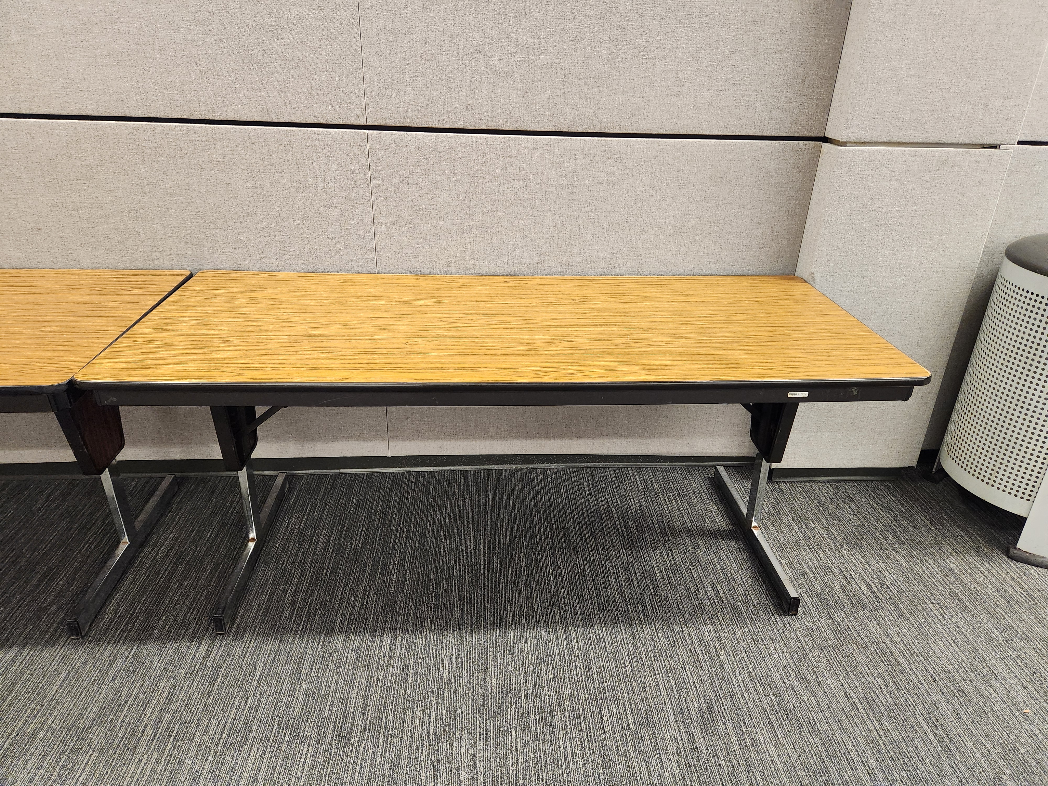 We have three of the tables pictured available for free to anyone who would like to come to the Farmington Community Library 12 Mile location to pick them up? The measurements are 6 ft long x 29 inches high x 30 inches wide. They weigh about 50lbs each and are made of particle board with wood finish. The tops show some wear and tear. Crystal Peterson Executive Assistant Phone: 248-848-430<tel:248-848-4302>3 Fax: 248-553-6892<tel:248-553-6892> Email: Crystal.Peterson@farmlib.org<mailto:Crystal.Peterson@farmlib.org> Web: www.Farmlib.org<http://www.farmlib.org/> Farmington Community Library | One Library, Two Locations [Farmington Community Library's logo. The logomark is three location icons formatted as an open book. The type reads "FCL" in a typewriter font next to the logomark.]FCL Farmington Hills | 32737 W. 12 Mile Rd.<https://www.google.com/maps/place/Farmington+Community+Library/@42.4979744,-83.3730966,17z/data=!4m12!1m6!3m5!1s0x8824b08d1fa19999:0x4e9c20fb69ee1f0f!2sFarmington+Community+Library!8m2!3d42.4979705!4d-83.3709079!3m4!1s0x8824b08d1fa19999:0x4e9c20fb69ee1f0f!8m2!3d42.4979705!4d-83.3709079> FCL Farmington | 23500 Liberty St.<https://www.google.com/maps/place/Farmington+Community+Library/@42.4643366,-83.3801262,17z/data=!3m1!4b1!4m5!3m4!1s0x8824b109dd4d9ad1:0x6cb213da27fb502c!8m2!3d42.4643327!4d-83.3779375> "The only thing that you absolutely have to know, is the location of the library." -Albert Einstein