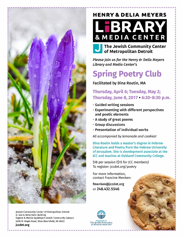 The poetry writing club is taught by Dina Routin, MA Open to the public. See flyer below for information.