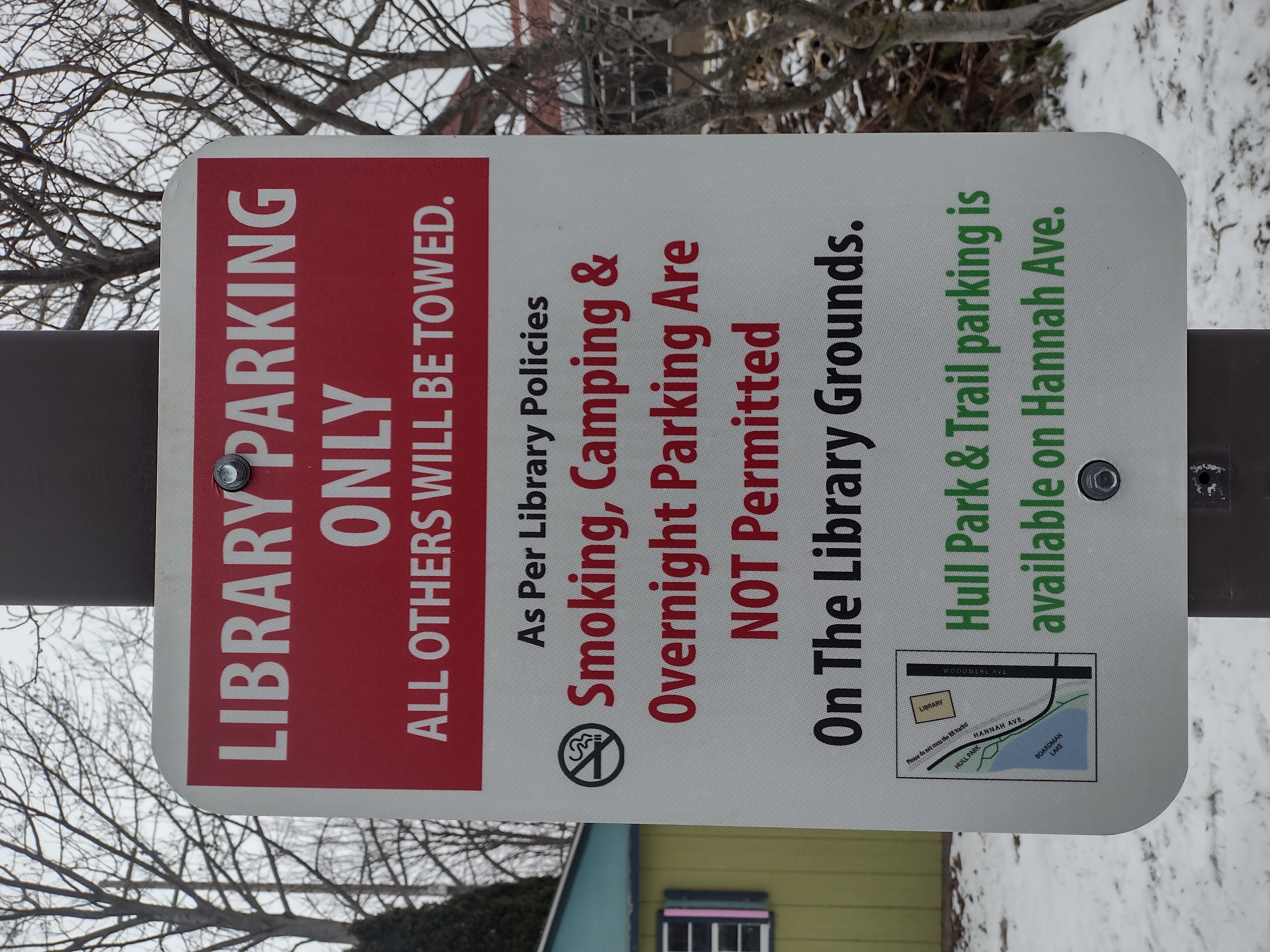 We are a small town with a very large summer tourist population. Our parking lot gets used by people that are not using the library (and neighboring museum) much to our consternation. We don't have the staff to "patrol" the parking lot to determine where people are going after they park, so we purchased library parking signs (picture attached) which seems to have helped somewhat in making visitors aware, and they do get a chuckle. Mark On Mon, Feb 26, 2024 at 12:18 PM Cierra Bakovka via Michlib-l < michlib-l@mcls.org> wrote: