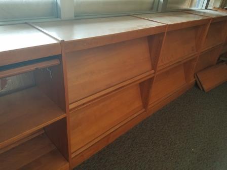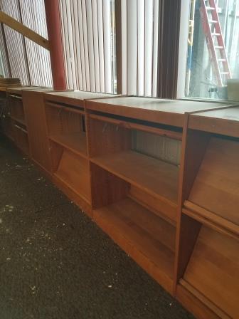 Hi, We are doing some renovating and I have row of 11 low shelves that need a good home. The shelves can either be regular shelves or also come with angled shelves for magazine display. Dimensions: 16" deep by 38.5" high x 36" long There are 11 sections of shelving. Everything is disassembled and ready to go. Just need to stop by and pick them up. Flexible schedule. Easy terms (free!) Just what you never knew you needed! Call if you have questions. thanks, lise -- Lise Mitchell, Director Grand Ledge Area District Library 131 E. Jefferson Street Grand Ledge, MI 48837 gladldirector@gmail.com 517-622-3550 direct 517-627-7014 Library 517-627-6276 fax