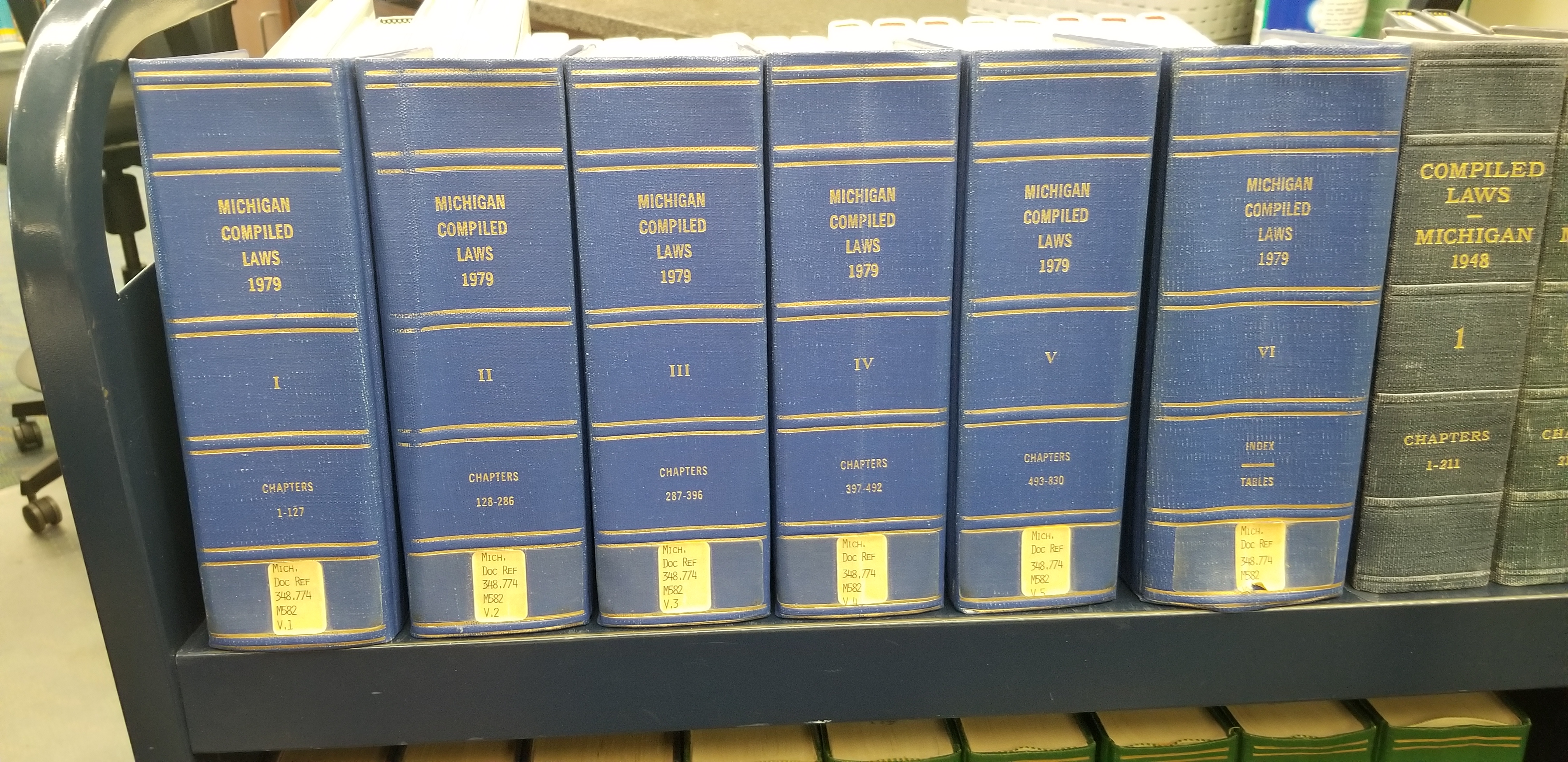 JUST the set of Michigan Compiled Laws are left. It would be a fantastic 50th birthday gift to me (Monday) if you would take them off my hands and not have me feel guilty recycling them. Fantastic display props, risers...the green ones work really well if you do a fun book tree during the holidays instead of a live Christmas tree. I've got lots of ideas for you! Who's game? On Thu, Jun 10, 2021 at 9:59 AM Betsy Myers <mmyers@tadl.org> wrote: