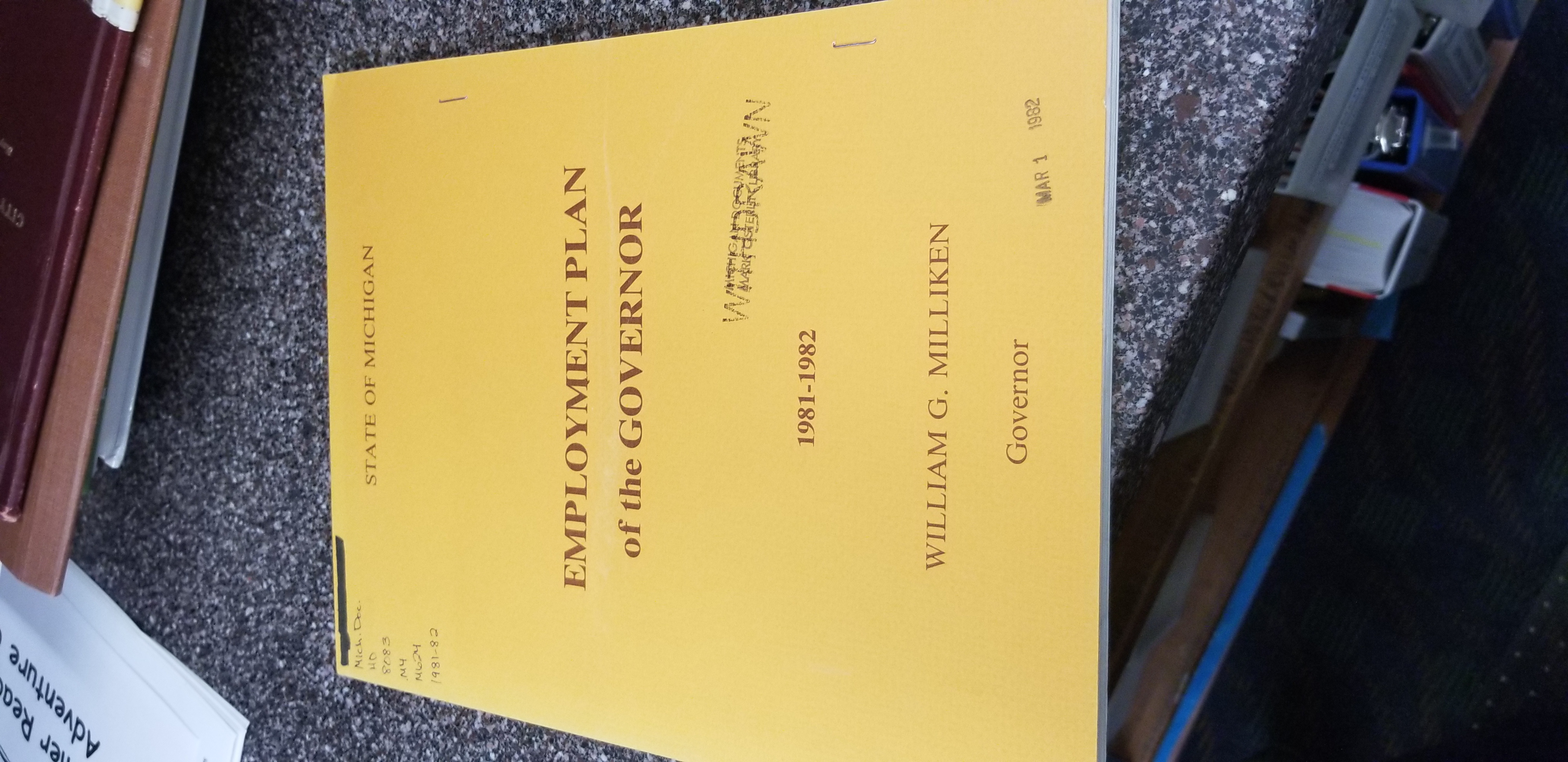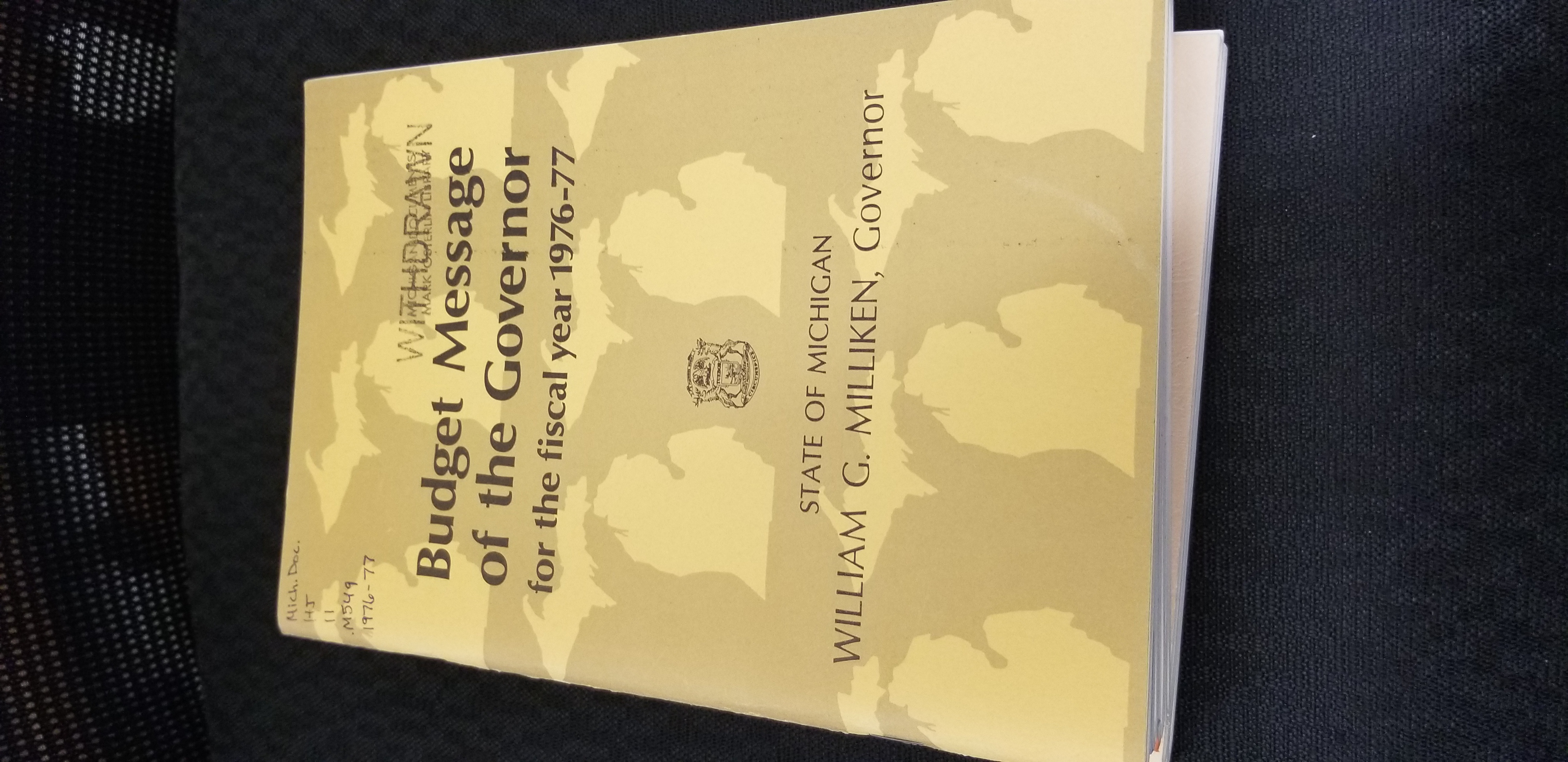 THAT got your attention! This will be a fun one for a select few of you. I know it was for me...just to figure out what some of this stuff was. Before they leave our building in ways librarians have a hard time with, I promised to try and find a home for these very special items. We received them from a college library but are not able to keep them due to space, collection development, what the general public wants, availability of internet access and well...just space. Some would make fantastic display pieces or props (we would keep them but we have a whole collection of Readers Guide to Periodicals we can't seem to let go). I have attached pictures of most of the covers so you can understand more about them than the general description below. Just shoot me an email and tell me what you would like, your RIDES number and a name to attach to them. I just know these will go fast. :) *Budget Message of the Governor (1974-1982)* *Economic Report of the Governor (1975-1982)* *Employment Plan of the Governor (1981-82)* *Executive Budget, State of Michigan (1976-1983)* *Governor's Special Commission on Land Use Report (1971 Appendix B, 1972)* *Michigan Compiled Laws Volumes 1-6, 1979* *Michigan Compiled Laws Volumes 1-6, 1948* *Michigan Compiled Laws Volumes 1-6, 1970* *Annual Report, Michigan Department of the Treasury (1974, 1975, 1975-78, 1978, 1978-82)* See...fun, right?! -- *Betsy Myers* Reference Department Interlibrary Loan/Programming *Traverse Area District Library* 610 Woodmere Ave Traverse City, MI 49686 231 932-8502 *Currently just read: Let Love Rule <https://catalog.tadl.org/main/details?id=48294423> by Lenny Kravitz* *Currently just listened to: Time for Mercy <https://tadl.overdrive.com/media/5428416> by John Grisham*