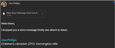 All, Please be advised FCL has been dealing with a slew of spoofed messages over the past few days. In some cases, mail has been sent externally appearing to come from an FCL staff member. Below is an example we dealt with this morning: [cid:image001.png@01DA29CA.EE3DEFA0] Please take a bit more caution when reviewing mail received from farmlib.org as we work to resolve the issue. Thank you, Pat McCormick IT Director
