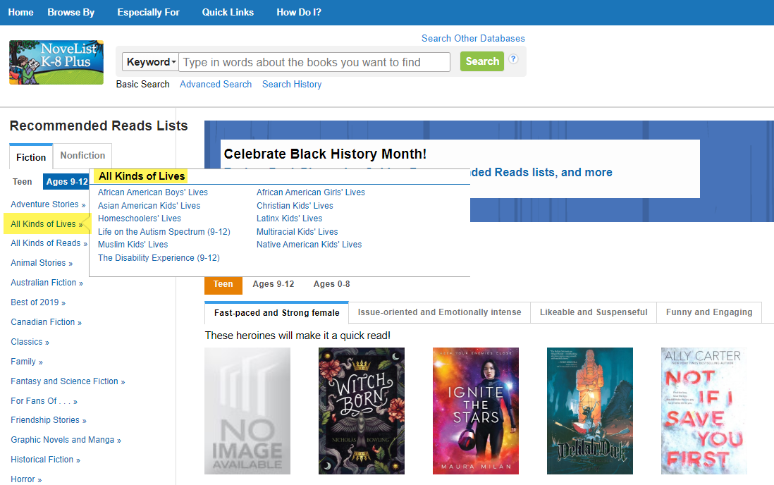 [NoveList screen shot]Simplify the Struggle to Find Books for EVERY Learner The Michigan eLibrary offers a lot to support early literacy learning. There are several connections between MeL and early literacy efforts in libraries and schools. Are you familiar with the Essential Instructional Practices in Early Literacy<https://literacyessentials.org/>? The purpose of the early literacy essentials is to improve children's literacy in Michigan. The K-3 Essentials are one of many guiding practices that can have a positive impact on literacy development. They also offer some strategies that the MeL eResources can support. Essential #8 outlines the need for "abundant reading material and reading opportunities in the classroom." In fact, five key areas are stressed: The classroom includes: * a wide range of books and other texts, print, audio, and digital, including information books, poetry, and storybooks that children are supported in accessing; * books and other materials connected to children's interests and that reflect children's backgrounds and cultural experiences, including class- and child-made books; * books children can borrow to bring home and/or access digitally at home; * comfortable places in which to read books, frequently visited by the teacher(s) and by adult volunteers recruited to the classroom; * opportunities for children to engage in independent reading of materials of their choice every day, with the teacher providing instruction and coaching in how to select texts and employ productive strategies during reading, feedback on children's reading, and post-reading response activities including text discussion. eBook Collection With over 12,000 eBook titles available at their fingertips (including Diary of a Wimpy Kid!), it is easy to point users to the eBook K-8 Collection<https://widgets.ebscohost.com/prod/customerspecific/mel/auth.php?database=ebsco-e860xna> in MeL. This will "give students access to a wide-range of books" and have them "access books digitally at home." One aspect of Essential #8 that is a bit more challenging for teachers, librarians and students to identify is "include books and other materials connected to children's interests and that reflect children's backgrounds and cultural experiences." How does one go about doing that? Is there a standard list that identifies whether characters are from an African, Asian, homeschool or LGBTQ background? What about lists of books with Native American heritage, children with disabilities or those who might be on the Autism Spectrum? Reader's Advisory Support With NoveList K-8 Plus<https://widgets.ebscohost.com/prod/customerspecific/mel/auth.php?database=ebscoprofile-novpk8> and NoveList Plus<https://widgets.ebscohost.com/prod/customerspecific/mel/auth.php?database=ebscoprofile-novplus>, it has never been easier to make selections based on diversity. Simply go to the eResource list in MeL, open either database and select All Kinds of Lives, located in the left-hand navigation. (In NoveList Plus, you must be in the age range of zero to teen for it to display). Using this reader's advisory tool can simplify the struggle to find books that support EVERY learner in your classroom, library or community. Brought to you by Ann Kaskinen from the MeL Team. Supporting Michigan Libraries by Putting You First. Want more information on MeL? Stay tuned for the next MeL Minute available on many Michigan library listservs, visit http://mel.org<http://mel.org/>, or sign up for the MeL Minute and other Library of Michigan e-mail lists via GovDelivery<https://public.govdelivery.com/accounts/MILOM/subscriber/new>. We encourage you to share MeL Minutes with your colleagues and networks. MeL eResources are available to Michigan residents or for Michigan library or school access only. #IMLSGrant Sonya Schryer Norris Library Consultant Library of Michigan Michigan Department of Education 517-335-1498 Norriss2@michigan.gov<mailto:Norriss2@michigan.gov> https://michigan.gov/libraryofmichigan https://mel.org<https://mel.org/> http://michlibrary.org<http://michlibrary.org/> You have the power to shape your future, and the future of all children, by counting everyone in your home in the 2020 Census<https://gcc01.safelinks.protection.outlook.com/?url=https%3A%2F%2Fmy2020census.gov%2F&data=02%7C01%7CNorrisS2%40michigan.gov%7Ce7ec159400914a99c42d08d7d5c450e1%7Cd5fb7087377742ad966a892ef47225d1%7C0%7C0%7C637212911508123639&sdata=xx6zojNDhjfJla%2F0VwFZ7lWKmBZx7vtJ3Y%2BMUagjNL4%3D&reserved=0>. [A close up of a sign Description automatically generated]