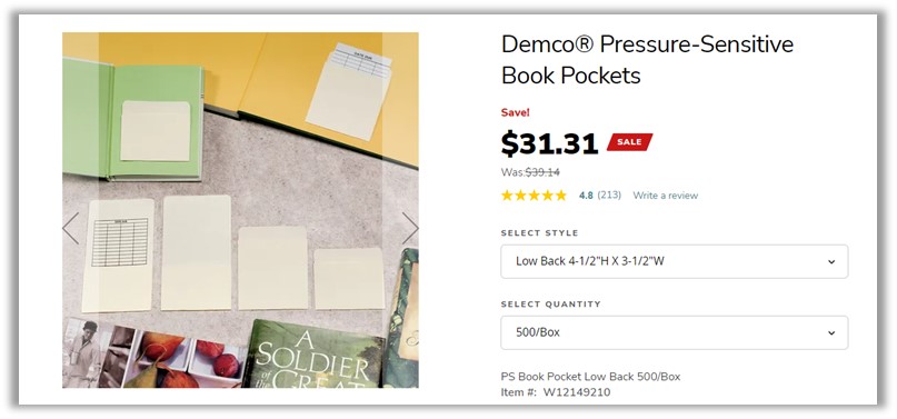 Demco® Pressure-Sensitive Book Pockets : 5 Boxes Available!