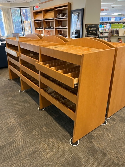 The Orion Township Public Library has 2 separate CD shelving units that are looking for a new home (free of charge). These pieces are heavy oak and will need to be picked up and transported by new owner. 105 ½" long (3, 35" sections) 46" tall 20" deep Stationary drawer on top and 3 pull out drawers beneath Pictures below Please let me know if you are interested. Thanks, Joyce Orion Township Public Library Administrative Assistant 248-287-8020 [cid:2cf49a96-3910-4678-9078-d66e01586075@namprd17.prod.outlook.com] [cid:image001.jpg@01D95BD8.FBE3E3A0] Sent from my iPhone