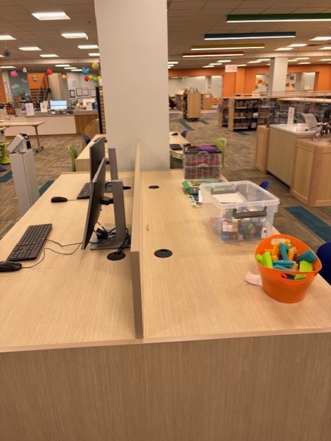 96" L x 60" W x 29" H with 12" Divider 4-Person Public Computer Table with under-side cable management. TMC Furniture Item/model XWCT-C6096P-29. Good condition. $400 Pick-up at Portage District Library. Please reach out with questions or to schedule a time to pick up. Thanks! Quyên Edwards Assistant to the Director/Library Board Secretary Portage District Library 300 Library Lane Portage, MI 49002 (269) 585-8701 she/her/hers