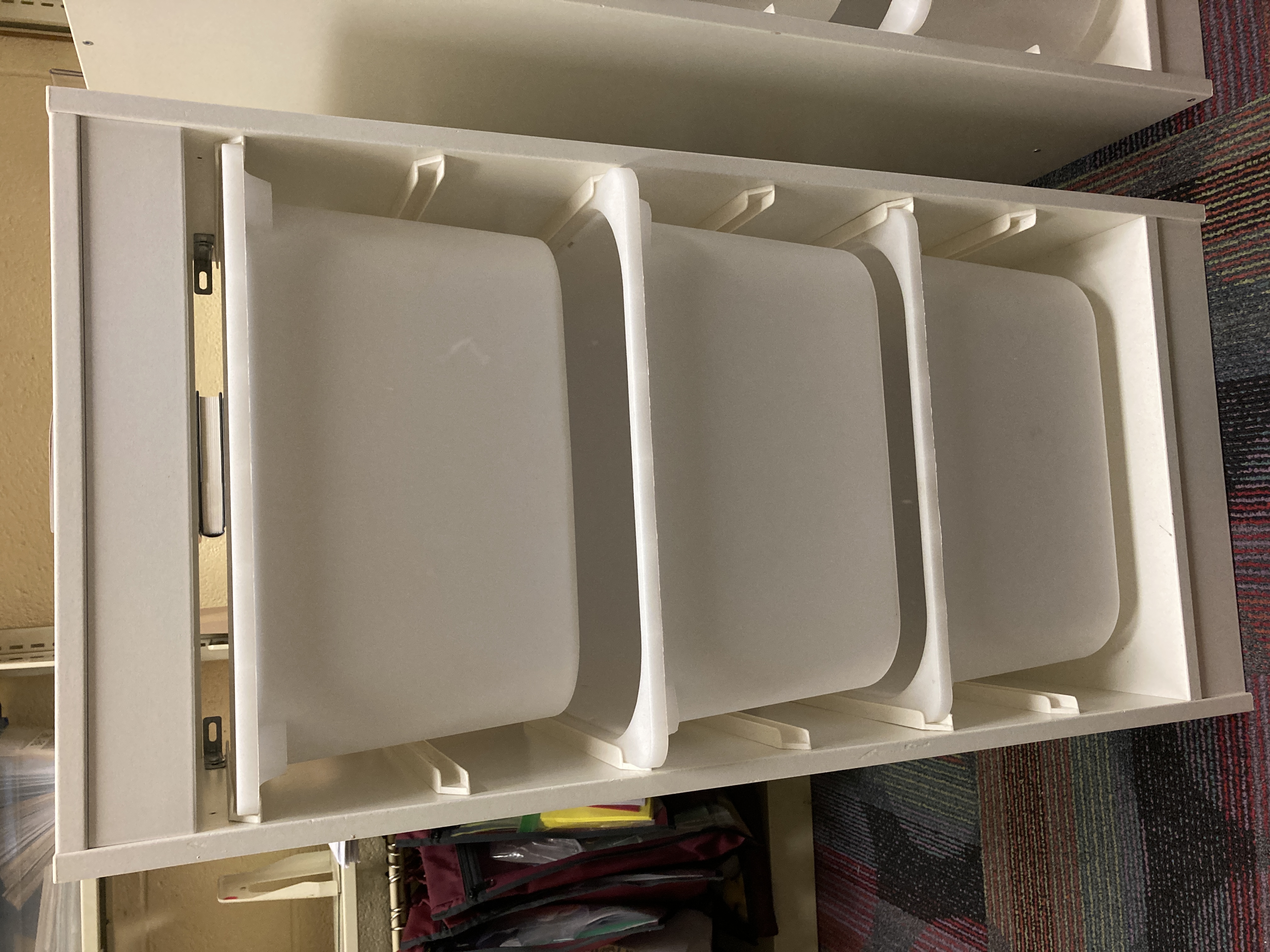 These bucket “shelves” and Lego table are available to anyone who is able to come to Farmington to come and get them. There are 2 shelf units, even though just one is pictured. Please be able to pick up by Feb. 2. Shelf unit: 37” tall x 18” wide Bucket dimensions: 15” x 11” x 9” tall Lego table (uses Duplo sized bricks): 27” x 32” x 18” tall Bethany Bruns Farmington Community Library 23500 Liberty St. Farmington, MI 48335