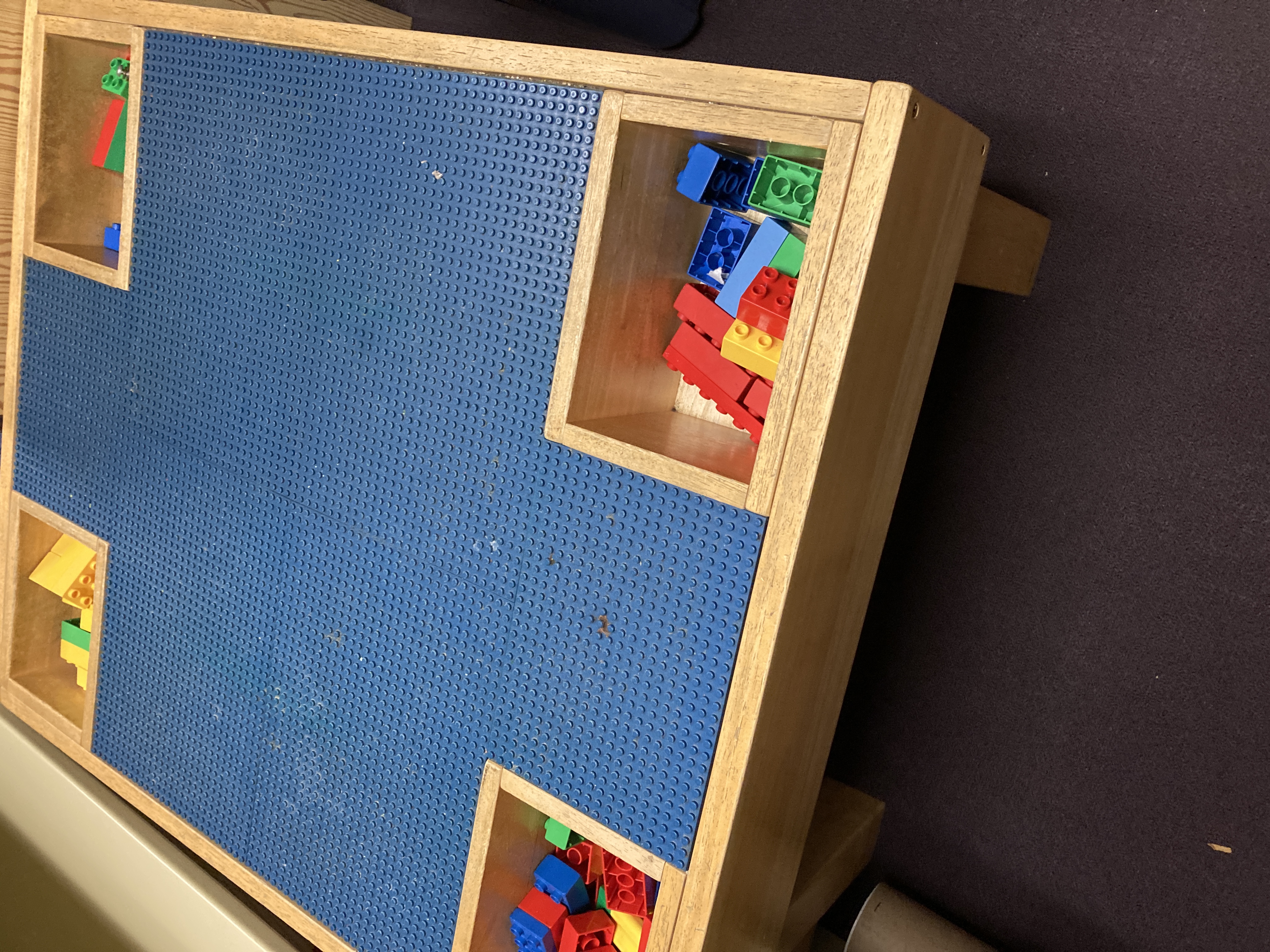 These bucket “shelves” and Lego table are available to anyone who is able to come to Farmington to come and get them. There are 2 shelf units, even though just one is pictured. Please be able to pick up by Feb. 2. Shelf unit: 37” tall x 18” wide Bucket dimensions: 15” x 11” x 9” tall Lego table (uses Duplo sized bricks): 27” x 32” x 18” tall