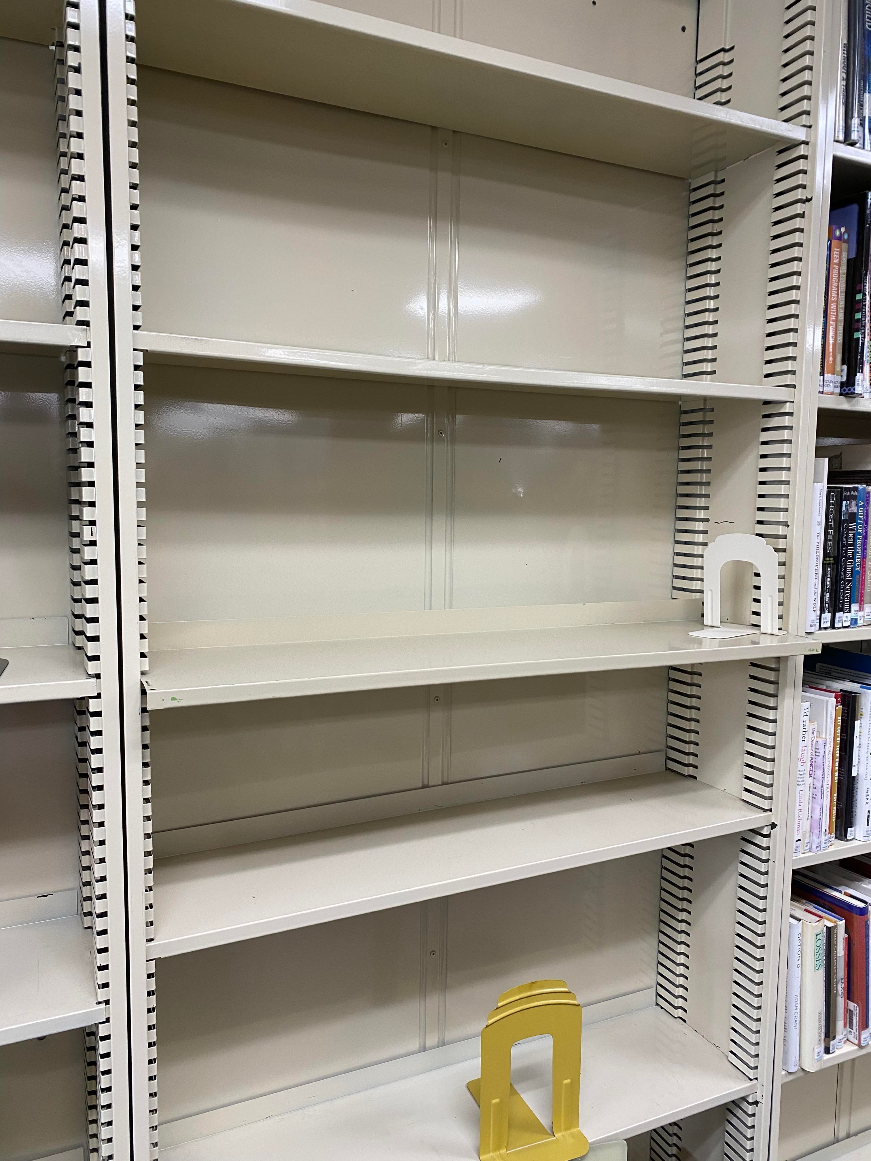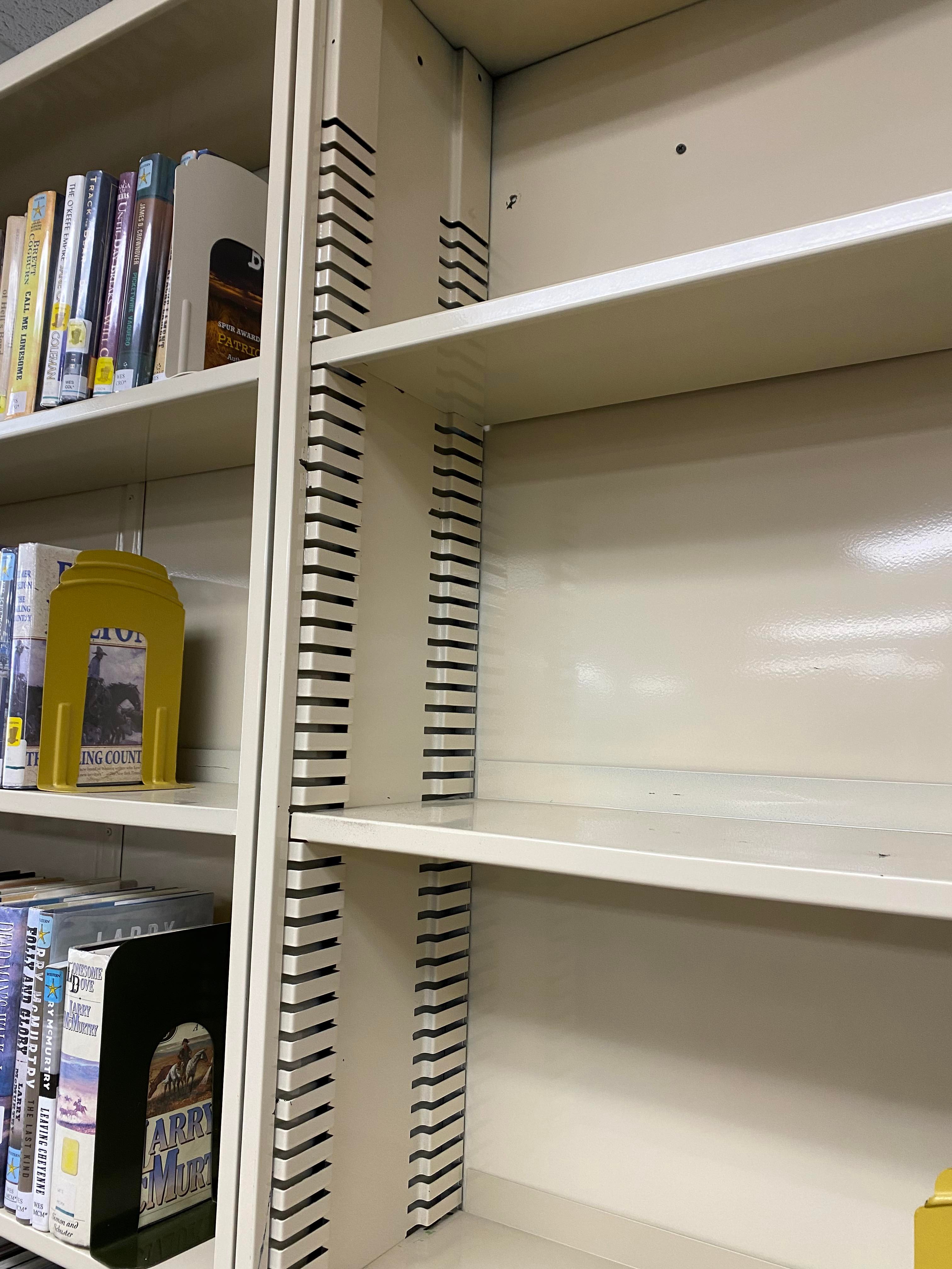 We are looking for about 4 shelves for the attached styled shelving units. They are aprx. 34 ¼ by 9. Thanks, Amber Alexander,MLIS Library Director Presque Isle District Library 181 E. Erie Street Rogers City, MI 49779 989.734.2477, 101 www.pidl.org <http://www.pidl.org/>