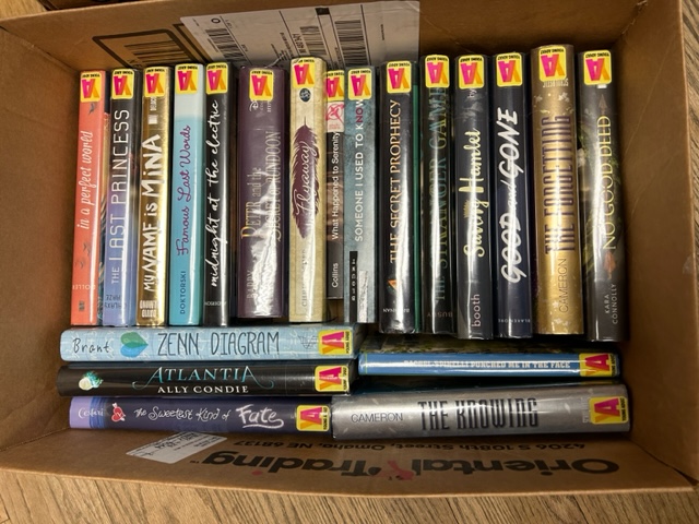 We are starting to weed our Young Adult collection and are hoping someone else might be able to save these books from a landfill (despite the fact that we send them to our recycling center, I have my doubts as to whether they actually get recycled). I've gone through all of our discards and removed any with yellowed pages, stains, tears, water wrinkles, etc. Most of these have only circ'd a couple of times. If you're interested, please send your Rides handle and the titles you want, or you can take the entire box. If there is interest, we have many, many more to come. Thanks! Deb Hemmye (she, her, hers) Library Director Huntington Woods Public Library 26415 Scotia Road Huntington Woods, MI 48070 248-543-9720, ext. 686