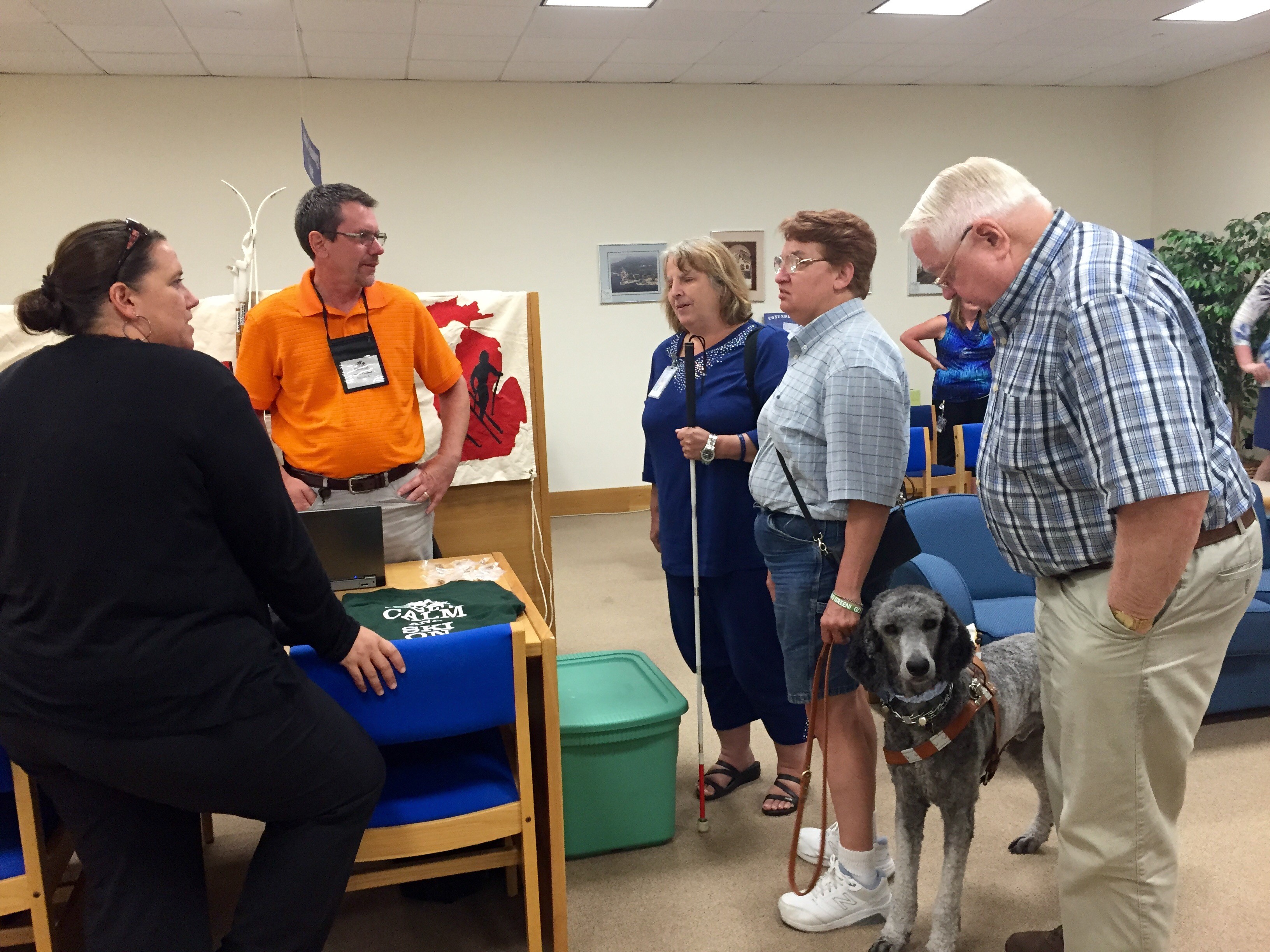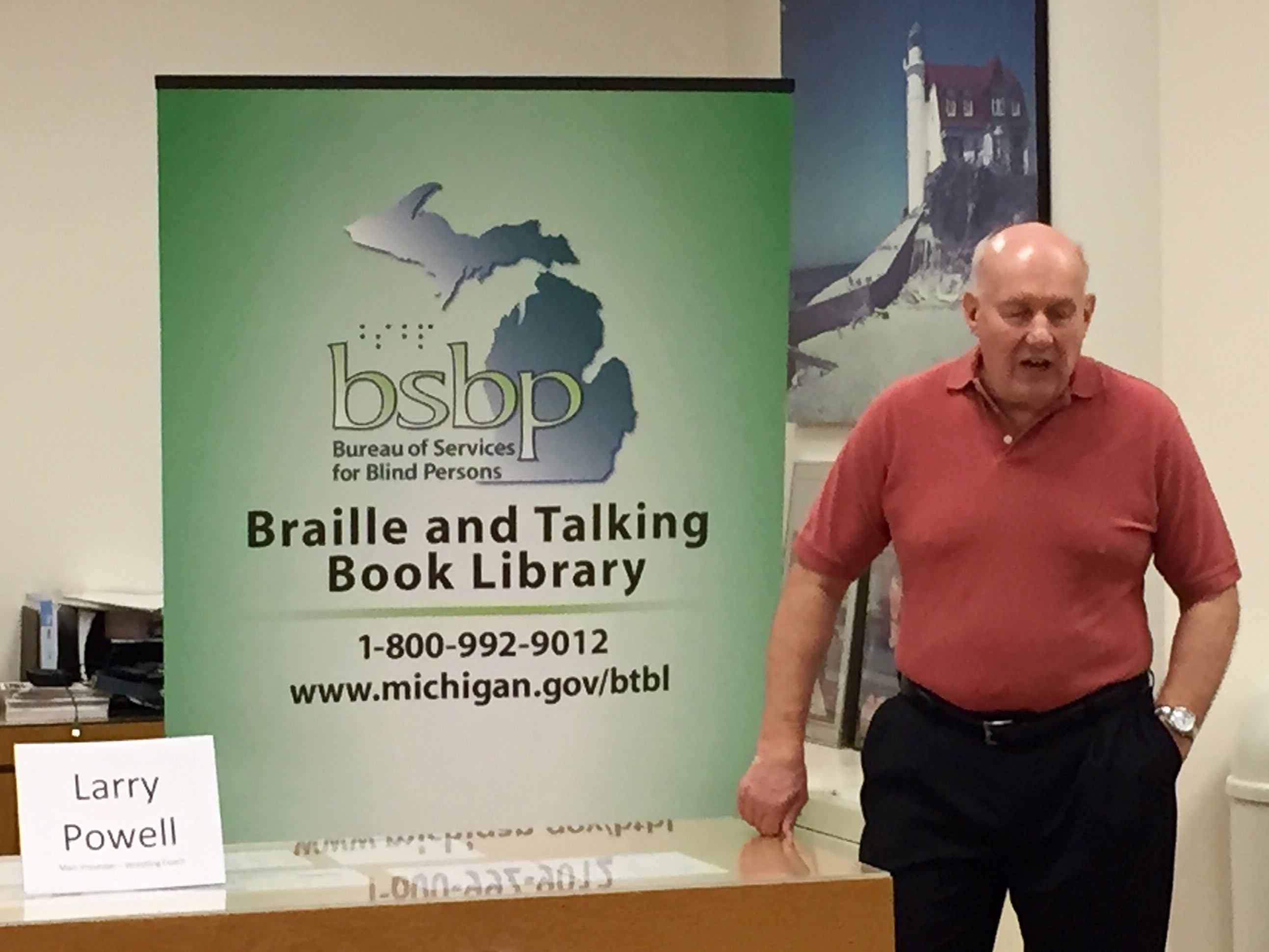 Yesterday's Summer Reading Event was a big success! Hall of Fame wrestling coach, Larry Powell, gave an engaging and insightful talk. This was followed by informative sessions with our wellness stations, including Playmakers, Ski for Light, and Capital City Scuba. BTBL would like to thank everyone that participated in this dynamic event! See the attachments for a couple of pictures of the event (picture descriptions provided below). Additional photos will soon be available on our website at www.michigan.gov/btbl<http://www.michigan.gov/btbl>. Thanks! Attachment 1: Larry Powell discusses his time as a wrestling coach at BTBL. He is standing by the reference desk with the BSBP Braille and Talking Book sign behind him. Attachment 2: Two Ski for Light representatives' stand by their station discussing the program with three program attendees (and a photogenic guide dog that happens to be the only one looking at the camera in the picture). Stephanie Wambaugh Reader Advisor, Outreach & Youth Librarian BSBP Braille & Talking Book Library P.O. Box 30007 702 W. Kalamazoo St. Lansing, MI 48909-7507 517-373-5357 / wambaughs@michigan.gov