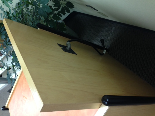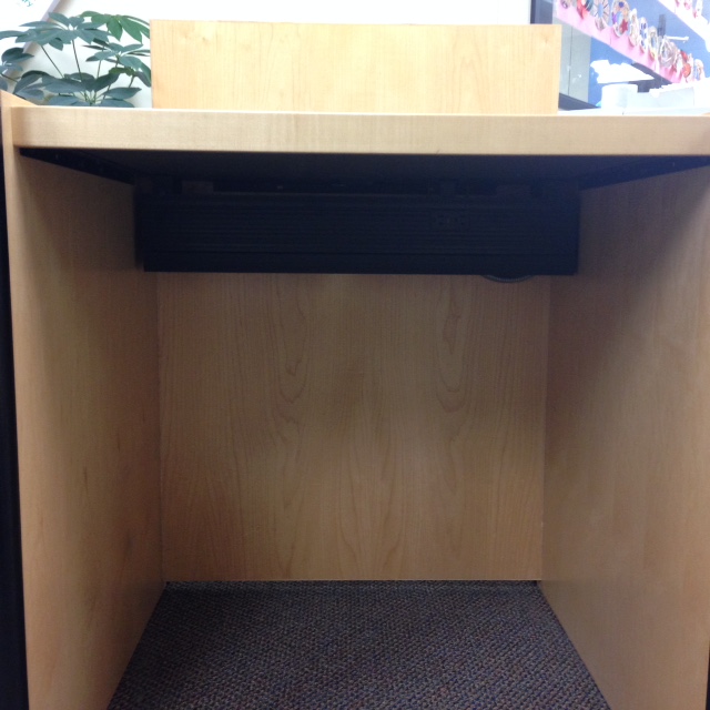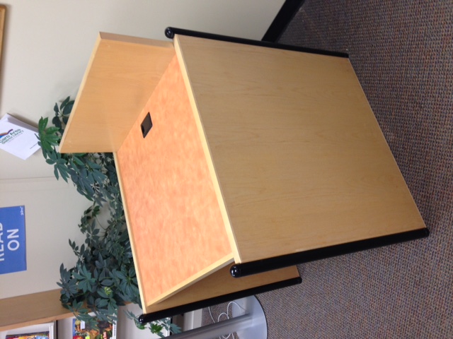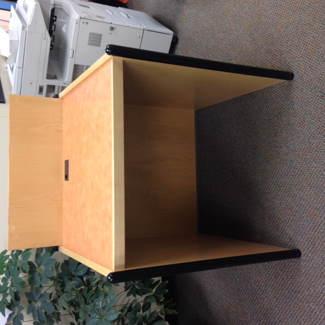 Free to a good home, one solid wood OPAC stand in good condition. 43" h by 32" w by 34" deep. Pickup only.