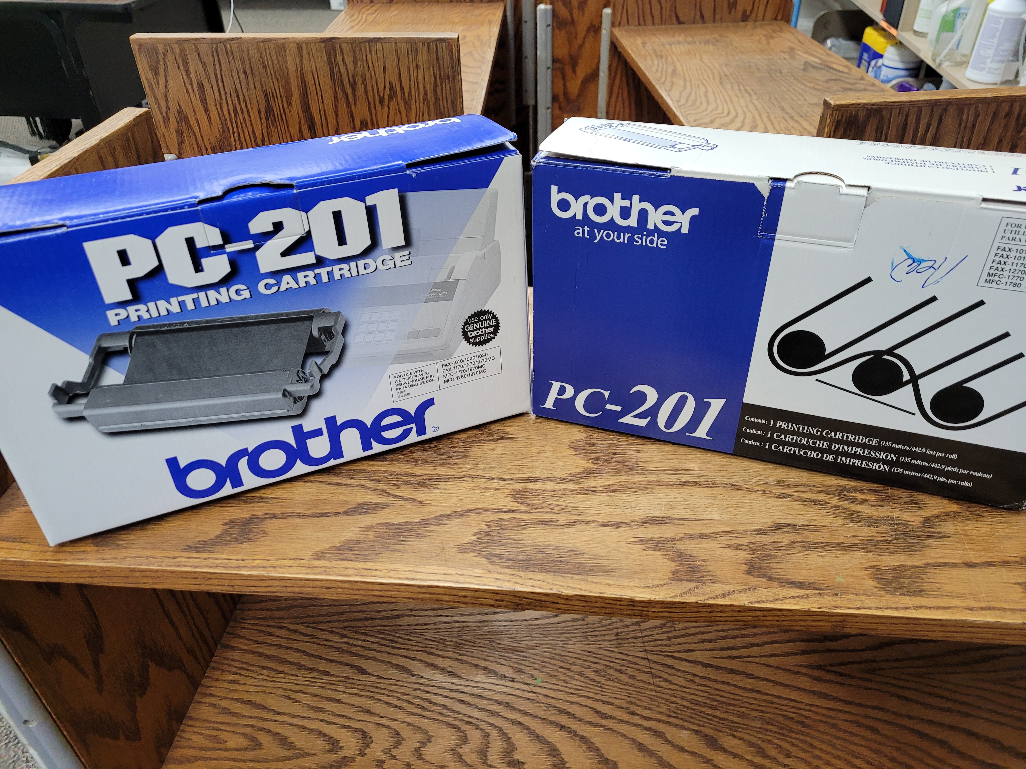 Fax Machine Ink Available: Brother brand, PC 201 Printing Cartridge $15 a box. Purchased in the spring- still good. Let me know off list. Thanks, folks! -- Tracy Logan Library Director Cadillac Wexford Public Library 411 S. Lake Street Cadillac, MI 49601 231-775-6541 logant@cadillaclibrary.org
