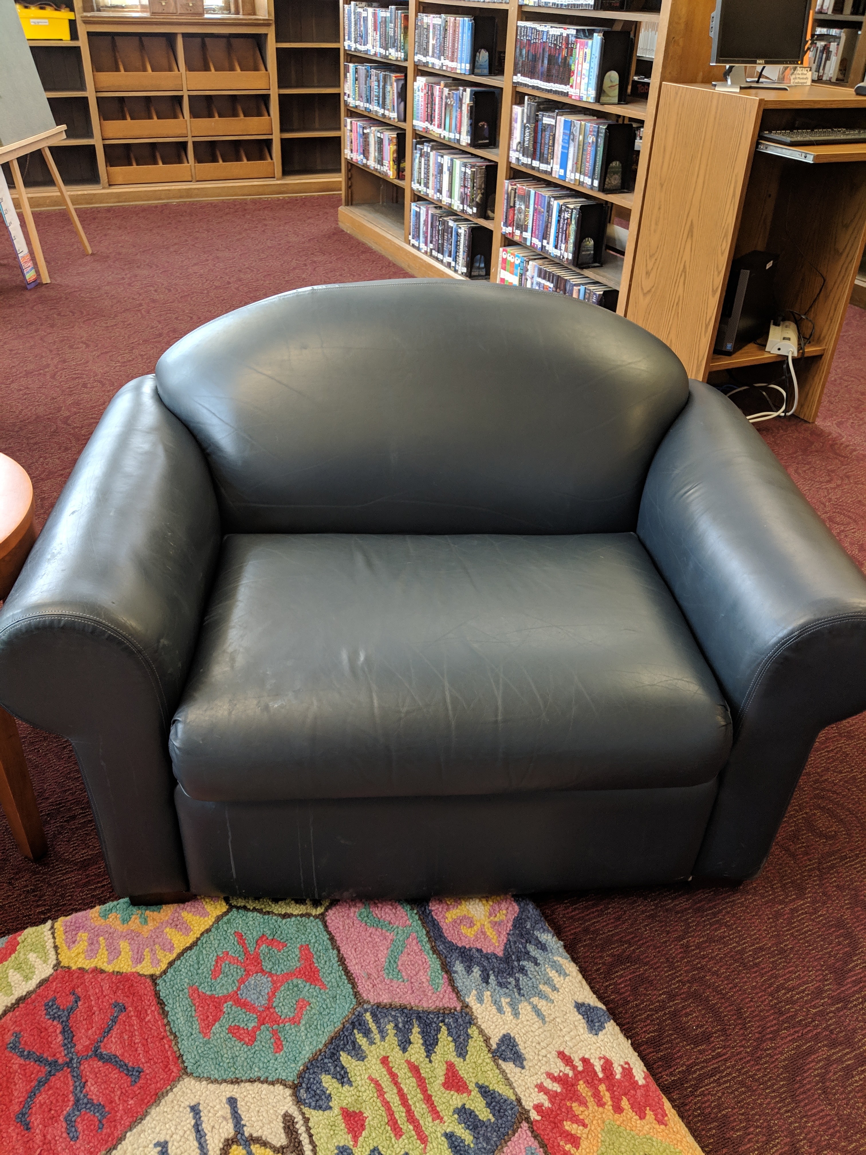 Hi, all- We have a set of navy seat-and-a-half chairs we're ready to pass on to someone else. They are in very good shape, but could use a good scrubbing. They are leather - not cloth - and clean up very nicely. $100 each, and you'll have to come pick them up. Thanks for looking! Britney Library Director Alvah N. Belding Memorial Library 302 E. Main St. Belding, MI 48809 616.794.1450 "You want weapons? We're in a library. Books are the best weapon in the world. This room's the greatest arsenal we could have. Arm yourself!" - The Doctor ------- End of Forwarded Message ------- Library Director Alvah N. Belding Memorial Library 302 E. Main St. Belding, MI 48809 616.794.1450 "You want weapons? We're in a library. Books are the best weapon in the world. This room's the greatest arsenal we could have. Arm yourself!" - The Doctor