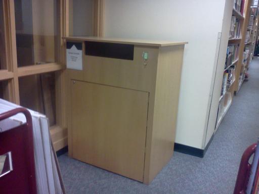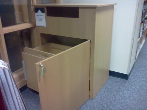 Hi Everyone, Westland Library is looking for a home for an oak drop-box. The box is in tip top condition. Dimensions: 36" wide, 25" deep, and 48" tall. 2 spring loaded carts included along with a working lock. Contact me if you are interested. First come, first serve. You must be able to pick it up. No delivery. See attached pictures. Marilyn Kwik marilyn.kwik@westlandlibrary.org