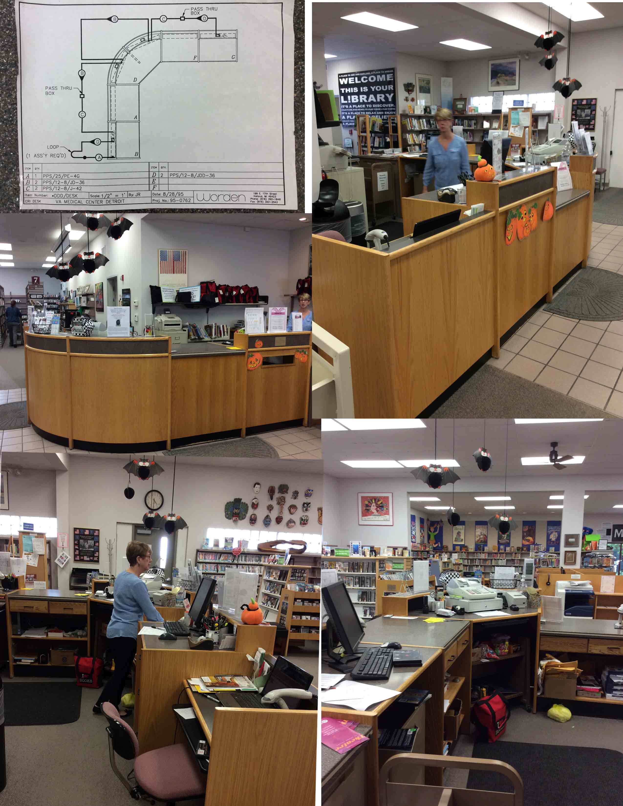 Coopersville Area District Library, in preparation for our expansion, is looking to sell our current circulation desk. It is a modular Worden in great shape. It consists of 5 segments; two are 32.5" tall, and three are 39.5" tall. See lots of lovely pictures attached. Questions? Email coolm@llcoop.org Thanks! Jackie Endres Coopersville Area District Library Youth Services Librarian 333 Ottawa St Coopersville MI 49404
