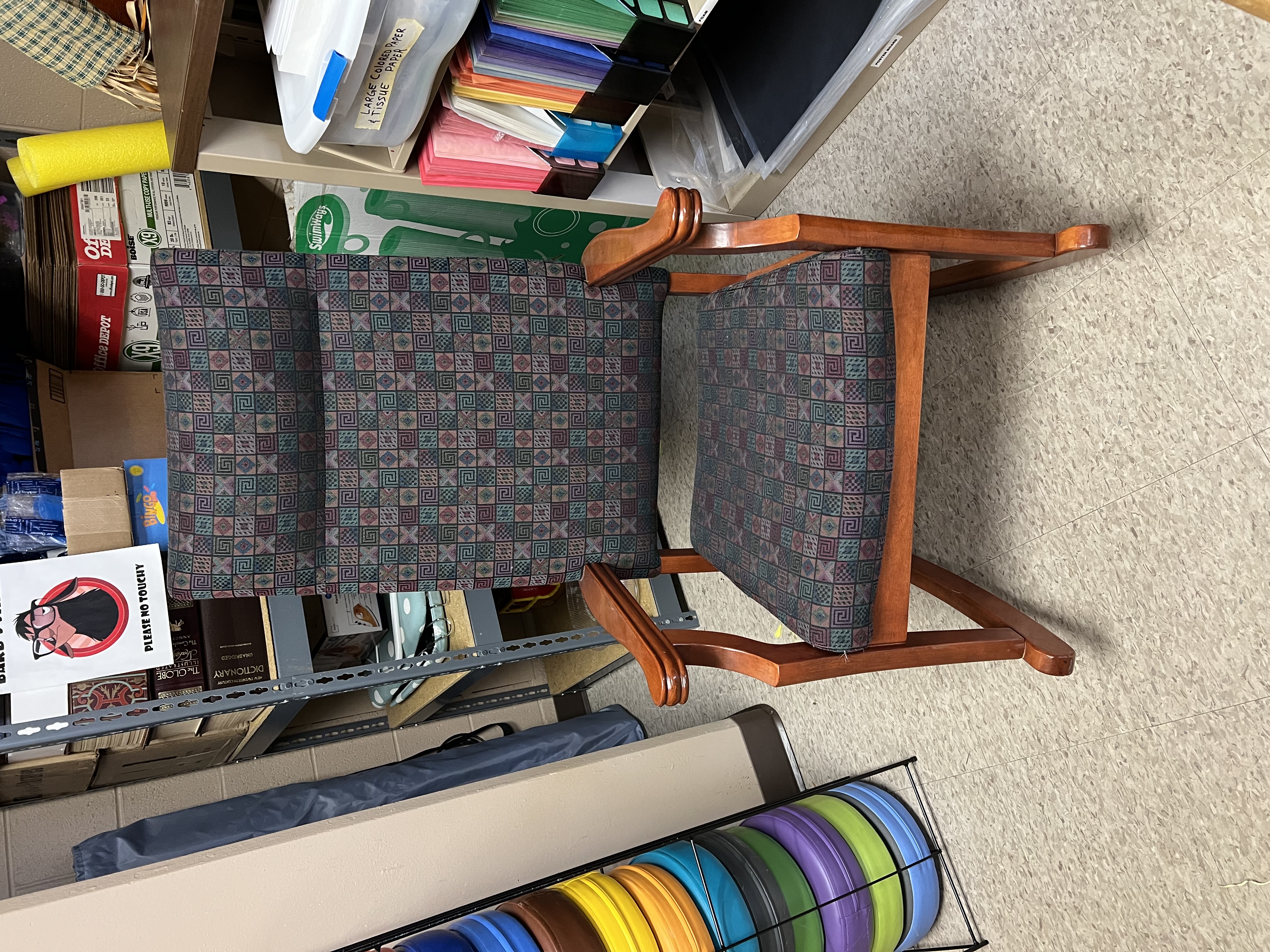Hello Library World! The Southgate Veterans Memorial Library is doing some re-organizing of closets and we have a few things that we are looking to get rid of. If you would like any of these things, please let me know and be advised that you will have to come collect them. We have a rocking chair (picture attached) We have what I think are book displays (never seen them in use, but I'm told we've had them in the closet for as long as the director can remember, so out they go). We have about 30 short ones, (pictures attached) and 60 long ones that are basically twice the length of the short ones. Let me know if you are interested. (Or if you know exactly how the black display things are supposed to be used, because I'm curious.) Best, Jennifer -- Jennifer Pickles Children's and Youth Librarian Southgate Veterans Memorial Library (734) 258-3002 14680 Dix-Toledo Rd. Southgate, MI 48195