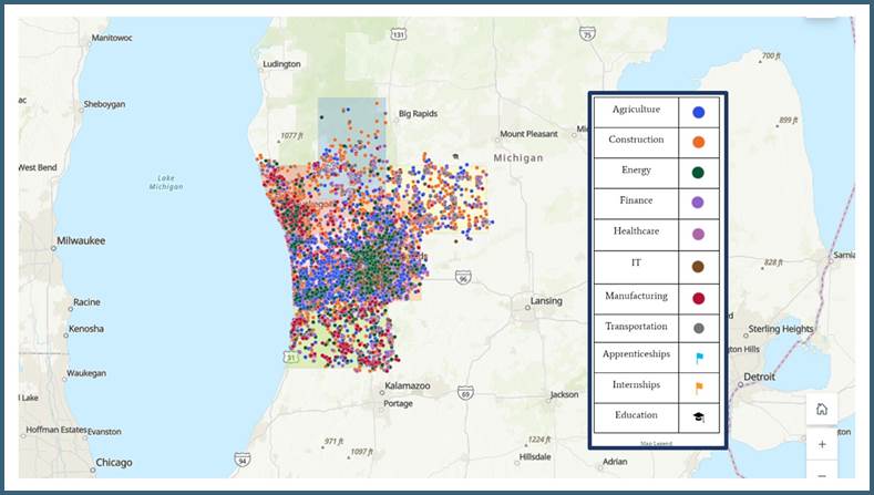 [A white letter on a blue green and red background Description automatically generated]A couple of years ago I met Diane Miller, MiSTEM Business, Community, & Education Liaison, at the Michigan Career Education Conference. She shared with me that the MiSTEM Network<https://www.michigan.gov/leo/boards-comms-councils/mistem> had been using data from AtoZdatabases<http://widgets.ebscohost.com/prod/customerspecific/mel/auth.php?database=atoz>, an eResource in the Michigan eLibrary<https://mel.org/welcome> (MeL), to build a story map where students with interests in a specific industry could go to learn about internships, apprenticeships, and jobs in their region of the state. Diane and I reconnected a few weeks ago, and I asked about the project. A lot has happened in two years! The MiSTEM Network’s Greater West Michigan Region has successfully completed the pilot<https://www.gvsu.edu/mistem/gismap/> and is now scaling the project up to the entire state. Through a partnership with Grand Valley State University, faculty serve as data coaches and undergrad students participate in internships learning valuable skills like team building, communication, problem solving, and critical thinking that help to prepare them as they enter the workforce. The goal of the Career Exploration StoryMap is to help educators and students make more real-world career connections in their communities as well as provide a visual resource for students to locate businesses in STEM fields that offer high-wage and high-demand jobs. In addition to items such as apprenticeships and internships, the map can be viewed by individual industry clusters like agriculture, construction, energy, finance, healthcare, IT, manufacturing, and transportation. Although the map is very user friendly, the website does include directions<https://storymaps.arcgis.com/stories/0f0aef7f647f462da7a70c0fdb6bbffe>. The MiSTEM StoryMap aggregates data available from AtoZdatabases in MeL and uses it to build a tool that will help students and adult community members quickly filter, sort, and analyze data in STEM industries by county. Essentially, the interactive map answers the following questions: * Where are the businesses in my community? * What industry has the most growth? * What are the hot jobs in my area? * What growth do businesses project? The information presented not only communicates the physical locations of business partners and industry clusters in Michigan, but it also helps students identify trends, patterns and opportunities to make better career decisions, which aligns with the guidelines in the Michigan Career Development Model<https://www.michigan.gov/mde/-/media/Project/Websites/mde/CTE/Tool-kits/MI_Career_Development_Model_-_Dec_18_2018_641266_7.pdf?rev=248c9cab6cb74215900af642f10f6387>. The MiSTEM StoryMap can also assist adults in preparing for higher education, credentialing, and the workforce. Whether it’s genealogy research, test preparation, accessing eBooks, finding the perfect article, or the ability to aggregate data, the eResources in MeL provide much support to all Michiganders. [A map of a state with many colored dots Description automatically generated] The MiSTEM Network's Greater West Michigan Region (Allegan, Kent, Montcalm, Muskegon, Newaygo, and Ottawa Counties) If you have any MeL eResources questions or issues, contact melerhelp@mcls.org<mailto:melerhelp@mcls.org> for help. Brought to you by Ann Kaskinen from the MeL Team. Supporting Michigan Libraries by Putting You First. Want more information on MeL? Stay tuned for the next MeL Minute available on many Michigan library listservs, visit http://mel.org<http://mel.org/>, or sign up for the MeL Minute and other Library of Michigan e-mail lists via GovDelivery<https://public.govdelivery.com/accounts/MILOM/subscriber/new>. We encourage you to share MeL Minutes with your colleagues and networks. MeL eResources are available to Michigan residents or for Michigan library or school access only. The MeL project is made possible in part by the Institute of Museum and Library Services through the Library of Michigan. Ann Kaskinen MeL Engagement Specialist, K-12 Midwest Collaborative for Library Services 517-325-5333 kaskinena@mcls.org<mailto:kaskinena@mcls.org> [cid:image004.png@01DA9C6B.F8A83D60] mcls.org<https://www.mcls.org/> | Facebook<https://www.facebook.com/mcls.org> | X<https://twitter.com/mclsorg> | LinkedIn<https://www.linkedin.com/company/midwest-collaborative-for-library-services>