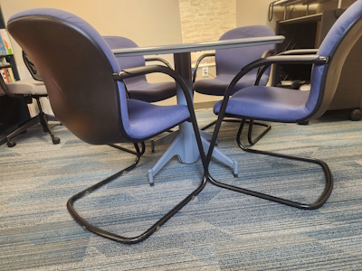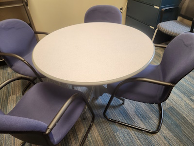 Hi all, We have a table and four chairs available for pickup. Priority will be given to anyone who can take it by next Wednesday (6/25). These were used in our staff area. The chairs are worn but still comfortable. The table is 42" round and roughly 19" high. It is in good shape, sturdy, and has adjustable feet to prevent wobbling. [image: 1000008066.jpg] [image: 1000008068.jpg] Megan Hathaway Department Head - Information Services Canton Public Library