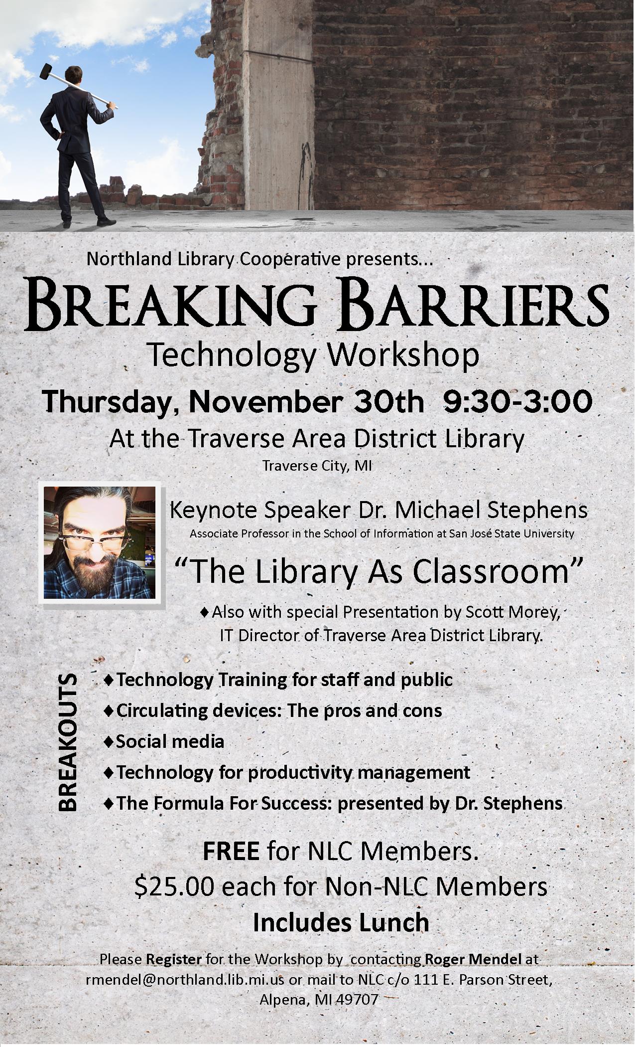 Here is the updated Poster for Northland's November 30 Technology workshop. Please send your registration in to me as soon as possible and use the form attached.. Thanks, Roger Roger Mendel, Director Northland Library Cooperative 231.855.2206 rmendel@northland.lib.mi.us