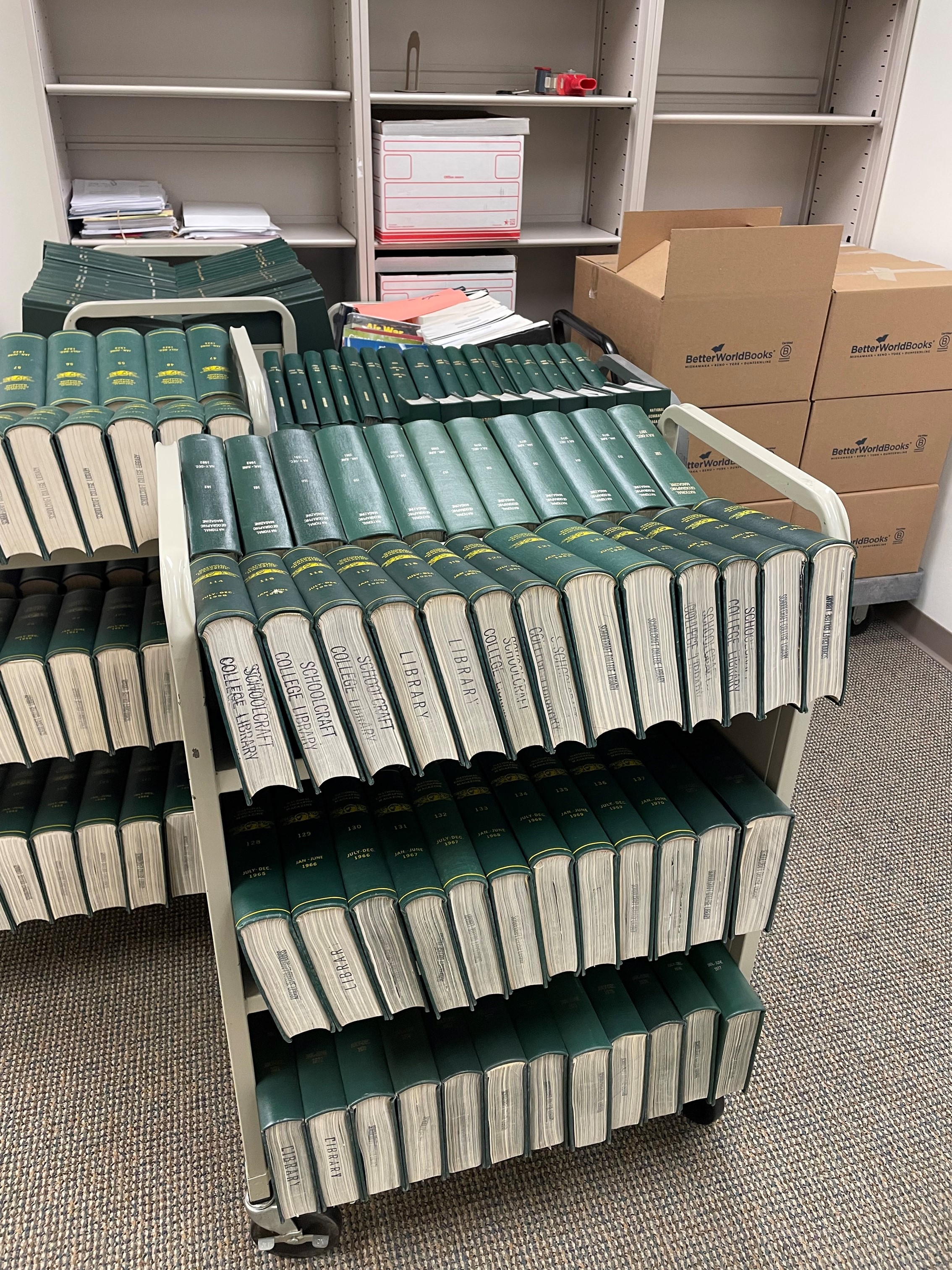 Dear Colleagues, We have a collection of bound Smithsonian and National Geographic issues available for giveaway. The Smithsonian range is from October 1970 vol (1) Number 7 – October 2012 vol (43) number 1 National Geographic range is from January 1925 vol (1) number 1 – December 2012 vol (222) number 6 If you are interested please reach out to Wayne Pricer wpricer@schoolcraft.edu or Kristin Keyes kkeyes@schoolcraft.edu Please note that we are not participating RIDES. Interested individuals will need to arrange pickup themselves. Thank you! Ozlem Gumeci *she, her* Technical Services Librarian Bradner Library, L-150 | 734-462-4437 Schoolcraft College 18600 Haggerty Rd., Livonia, MI 48152-2696 http://www.schoolcraft.edu/ <http://www.schoolcraft.edu/>