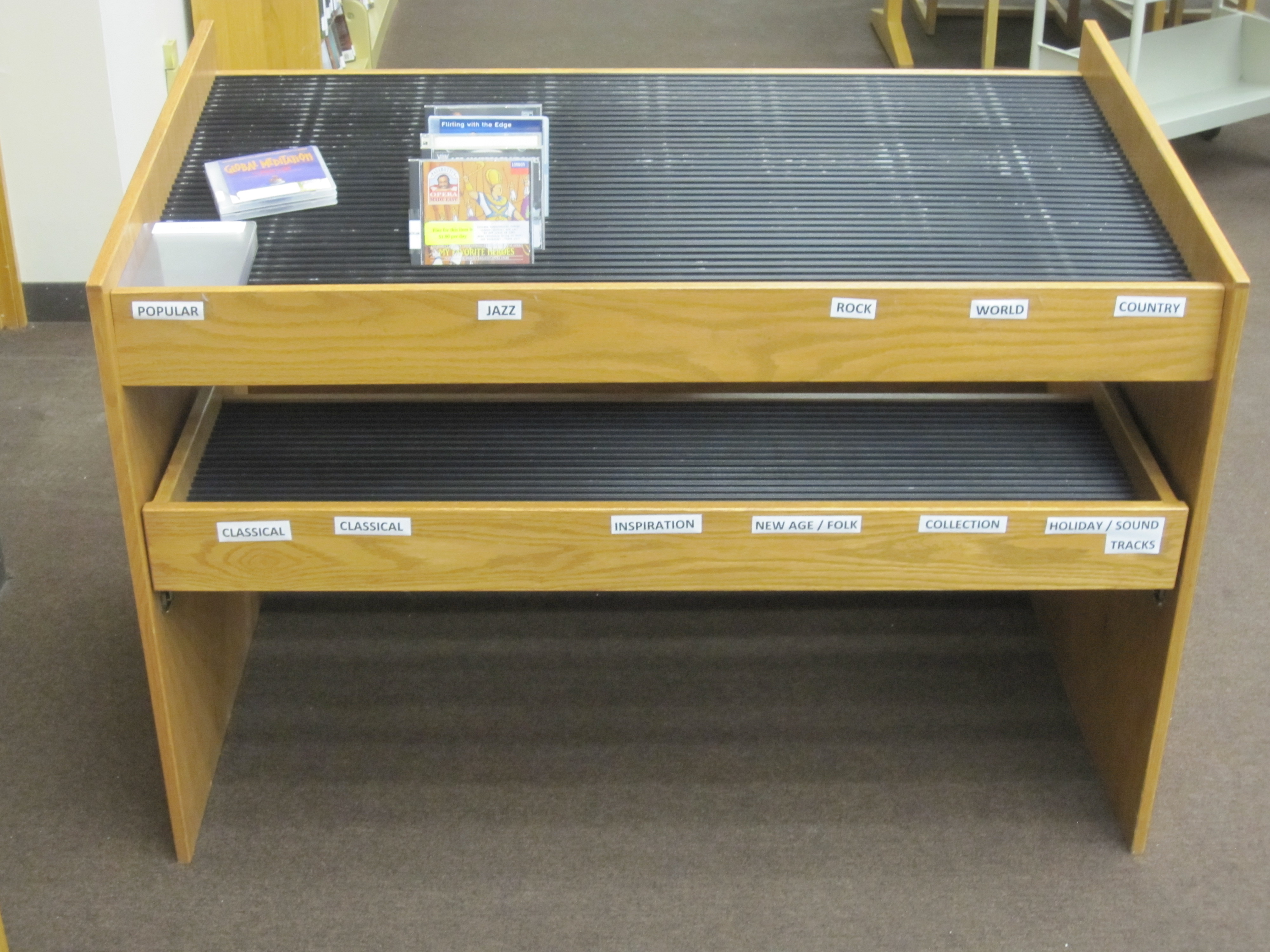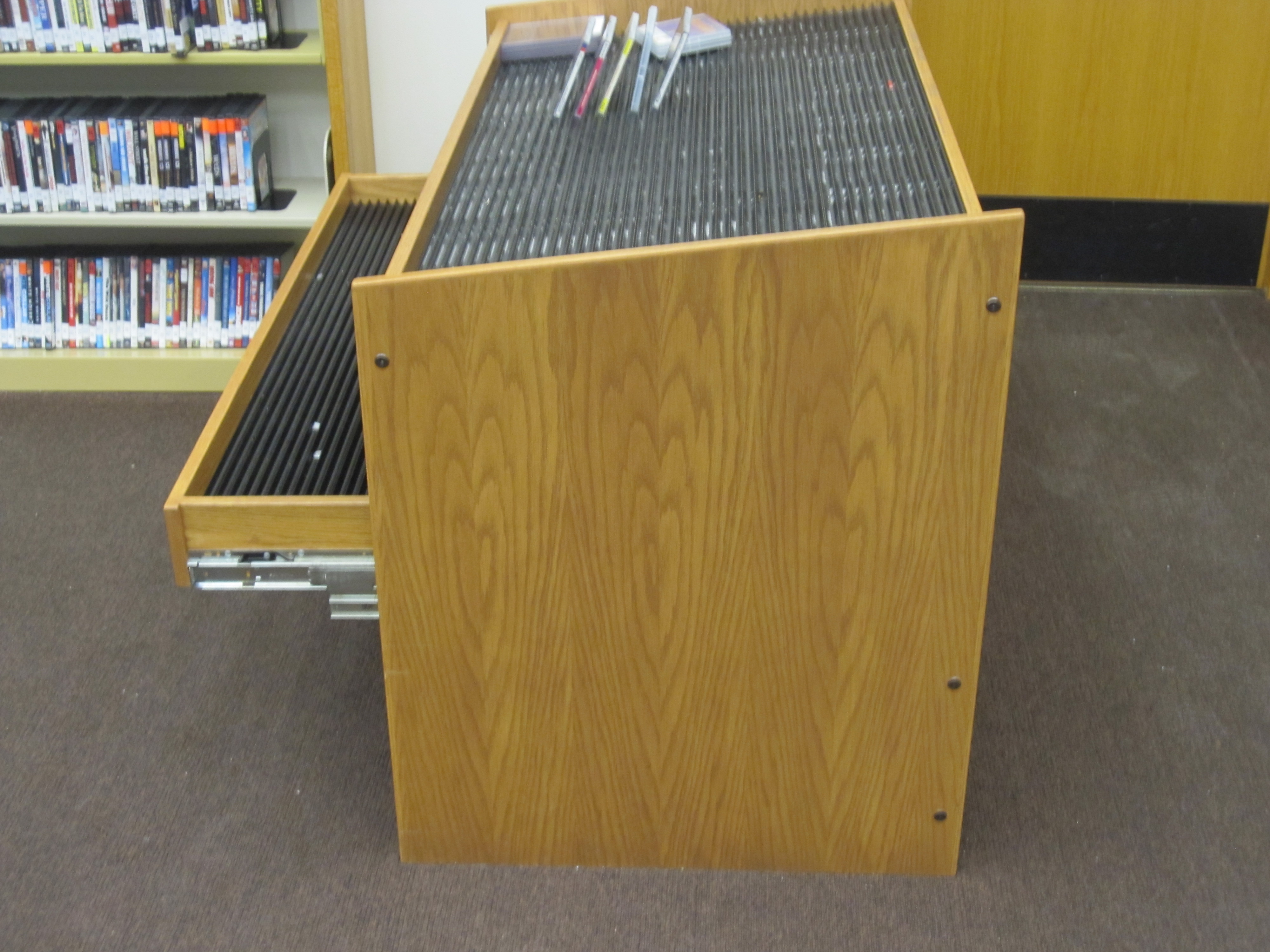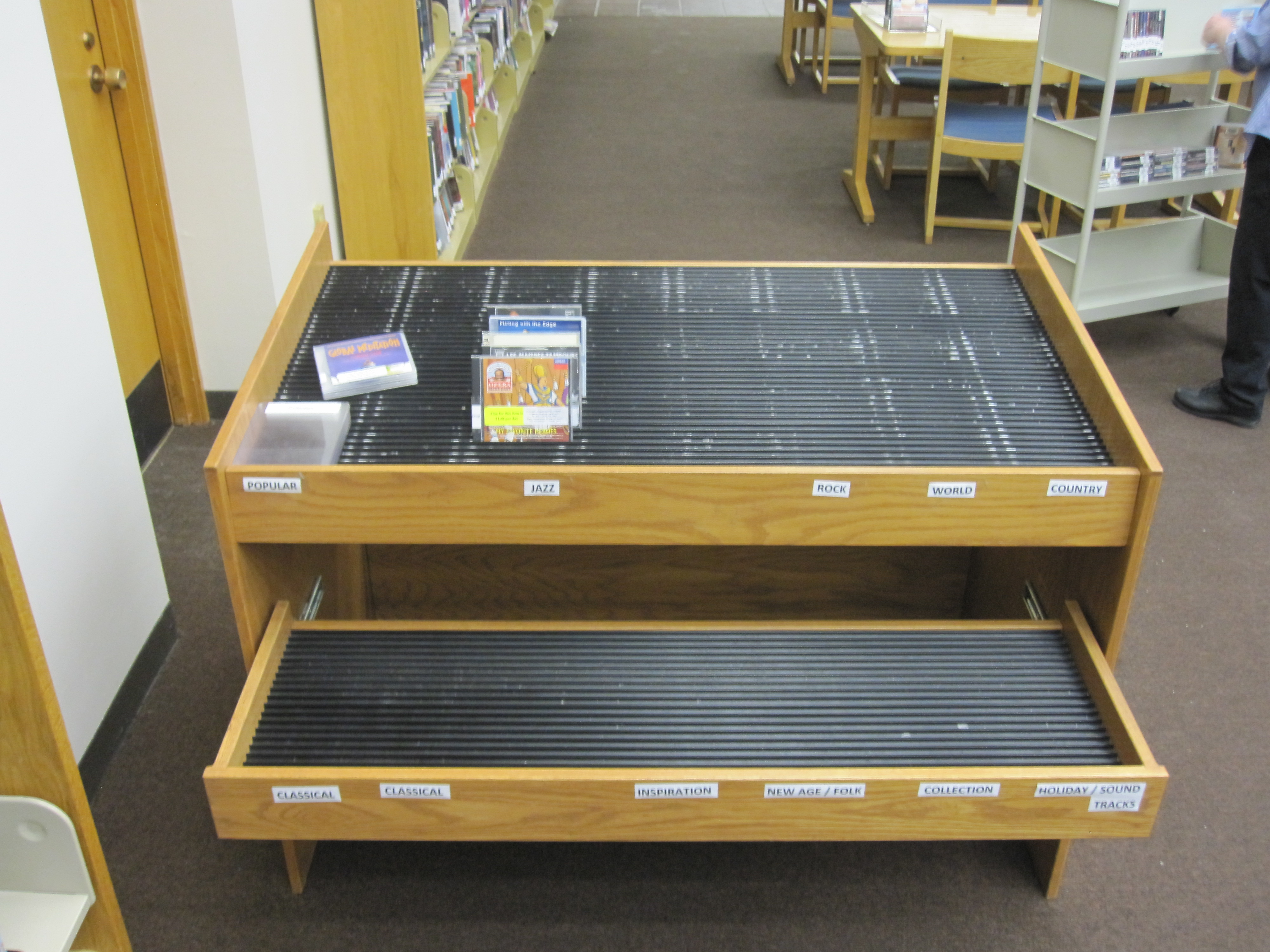 Hello Everyone: We have a CD stand with flipper trays free to a good home. You need only pick it up from our main library in Cassopolis. I'm attaching a few pictures. The stand measures 50" wide, 32" high, and 38" deep. Please call or e-mail if you have further questions. Jennifer Ray Cass District Library 319 M 62 North Cassopolis, MI 49031 269-445-3400 ext. 25 jray@cass.lib.mi.us