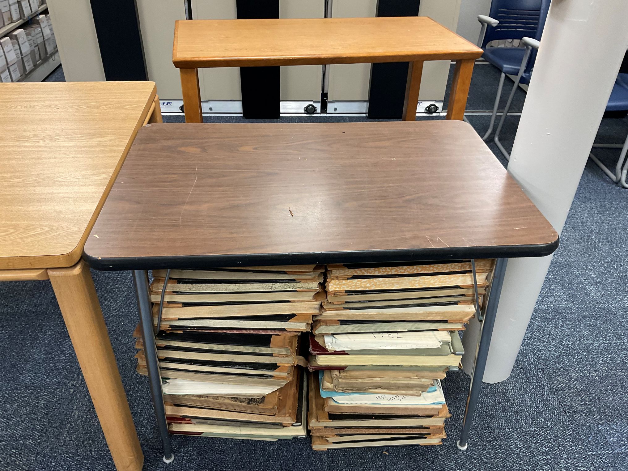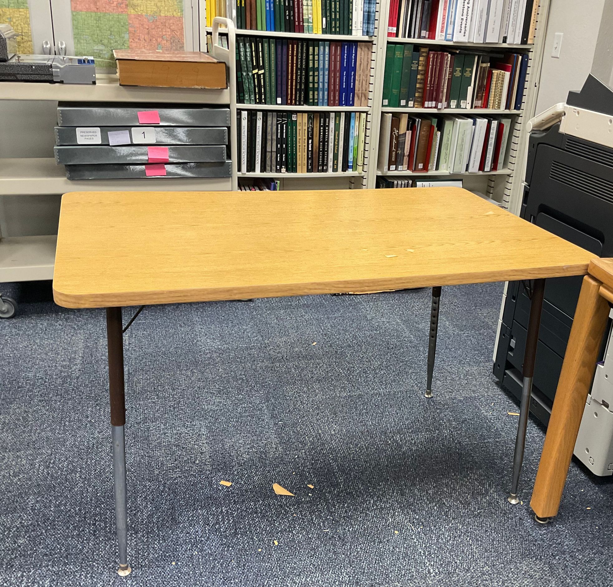 2 'Traditional' LIbrary oak tables - 60"x 36", 30" tall 2 smaller 'traditional' lin=brary oak tables - 48"x 24", 29" tall 1 laminate oak-look table, 48" x 30", 29" tall 1 small dark laminate table, 36" x 24", 29" tall. Gum underneath included. -- Diane McKee Howell Carnegie Library 517-546-0720 ext. 114 www.howelllibrary.org