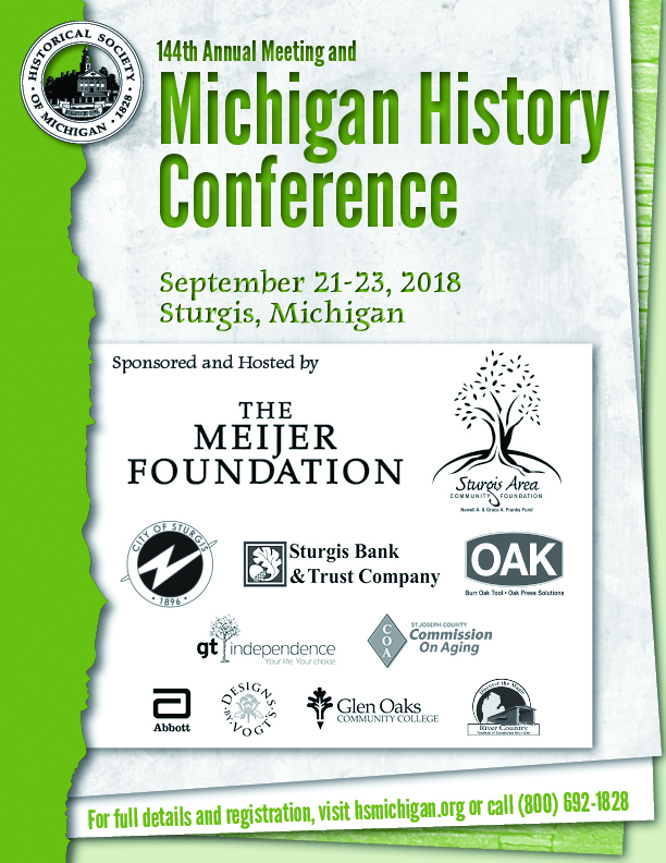 cid:image002.jpg@01D0250E.A301ABF0 Three Days Left to Register at the Standard Price for the Michigan History Conference! Standard registration for the Michigan History Conference ends on September 9! After that date, late registration pricing begins. The 144th Annual Meeting and Michigan History Conference will be held September 21-23, 2018, in Sturgis, Michigan. The conference offers four keynotes that cover a wide range of popular topics, including "Legends and Lore of the Great Sauk Trail," "Michiganders on the Titanic," "At the Depot: The Making of a Museum," and "Colon: Magic Capital of the World." <http://hsmichigan.org/conferences/annual-state-history-conference/> Fill out the registration form on our website now to avoid late fees. <http://hsmichigan.org/conferences/annual-state-history-conference/> Check out our website for more information. <https://hsmichigan.org/wp-content/uploads/2014/07/Michigan-History-Conferen ce-online.pdf> Download the conference brochure. Roosevelt on Trial Did you know that former President Theodore Roosevelt sued the editor of Ishpeming's newspaper, The Iron Ore, for libel? In 1913, George Newlett, publisher of The Iron Ore, printed an article stating that Roosevelt "gets drunk.and not that infrequently." In a week-long trial in the Marquette County Courthouse, Roosevelt denied the accusations and Newlett dramatically announced that he had been mistaken. Roosevelt asked the court for only minor damages, so the jury awarded him six cents. UPCOMING HISTORY HOUNDS Path to Freedom: Cass County and the Underground Railroad Cass County played a key role in the Underground Railroad, as did Quakers James Bonine and Stephen Bogue, who were members of an anti-slavery network. Join us on September 12 at 7 p.m. for a presentation on how they and other like-minded abolitionists sheltered freedom-seekers bound for Canada and helped establish a thriving community of free African Americans in the county. <http://hsmichigan.org/programs/history-hounds-lecture-series/hh-registratio n-members/> Members can register FOR FREE on our website. <http://hsmichigan.org/programs/history-hounds-lecture-series/hh-registratio n-non-members/> Non-members can register for $7 on our website. <http://hsmichigan.org/programs/history-hounds-lecture-series/> Check out our upcoming sessions. SAVE THE DATE! History Skills Boot Camp Saturday, November 3, 2018 Lansing Community College West Campus Attend a full day of workshops to hone your skills in the areas of historic preservation, managing a site, historic skills outreach, reenactors and living history, and more! A full list of sessions will be available soon. <http://hsmichigan.org/conferences/boot-camp/> Please fill out the form on our website if you would like to be notified when the schedule is available. cid:image001.jpg@01CF8A43.BF828E40 _____ The Historical Society of Michigan is our state's oldest cultural organization, founded in 1828 by territorial governor Lewis Cass and explorer Henry Schoolcraft. A nongovernmental nonprofit, the Society focuses on publications, conferences, education, awards and recognition programming, and support for local history organizations to preserve and promote Michigan's rich history. _____ For more information on the Historical Society of Michigan, please visit <http://www.hsmichigan.org/> www.hsmichigan.org or e-mail us at <mailto:hsm@hsmichigan.org> hsm@hsmichigan.org. _____ The Historical Society of Michigan 5815 Executive Dr. . Lansing, MI 48911 Phone: (517) 324-1828 . FAX: (517) 324-4370 <https://hsmichigan.org/store/donate/make-a-donation/> cid:image011.jpg@01D3861A.07D4BAD0 CALL FOR SUBMISSIONS: Michigan History and Chronicle! Can you remember a historic event from your childhood that always leaves you smiling? Is there a product or company made in Michigan that you believe deserves to be showcased? Have you been itching to publish your article about a niche subject in Michigan's history, but you don't know where to go? We're here to help! HSM is currently accepting submissions for both Michigan History magazine and Chronicle. <http://hsmichigan.org/publications/writers-guidelines/> Before you submit, review our writer's guidelines. All queries and manuscripts should be sent to <mailto:editor@hsmichigan.org> editor@hsmichigan.org. Upcoming History HoundsT Sessions: Can You Dig It? Archaeology at Fort St. Joseph Wednesday, October 10 with Michael Nassaney, Western Michigan University The Wreck of the Edmund Fitzgerald Wednesday, November 14 with John Beck, Heritage Christian Academy Riding the Rails: The Pere Marquette 1225 Locomotive Wednesday, December 12 with Kevin P. Keefe, Author <http://hsmichigan.org/programs/history-hounds-lecture-series/> Check out our website for more. Upcoming Events From Our Members The Chesterfield Historical Society presents "Heritage Days," Saturday, September 8, and Sunday, September 9, in Chesterfield. The Yankee Air Museum presents "Behind the Scenes Day," Saturday, September 22, in Belleville. The Chippewa Nature Center presents "Geocaching Sleepy Hollow Park," Saturday, September 29, in Midland. <http://www.hsmichigan.org/calendar/> For more calendar events, see our website! Interested in featuring an event or exhibit on HSM's online calendar and eNews? We are always looking to support our member organizations, and one of the ways we show support is in advertising your events and exhibits. Have an exhibit or event you'd like promoted? <http://www.hsmichigan.org/calendar/event-submission/> Feel free to submit your listing via our online calendar registration form here. This e-mail is sent to our members and friends to keep you updated on historical activities and opportunities to learn more about our state's history. To opt-out, please respond to this e-mail with "remove" in the subject line. If you received this e-mail as part of your participation in the Michlib-l mailing list (listserv), please follow their removal process.